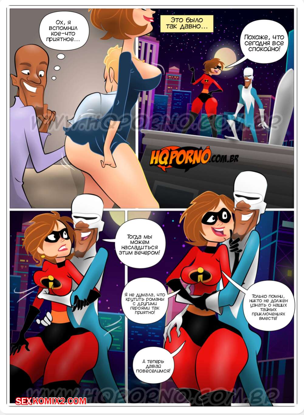 Порно комикс Невероятная семья. Часть 2. Вкусное воспоминание. Familia Incrivel. HQporno Фреон гостил у своих друзей и глядя на жену мужа вспомнил их былые времена. Както во время патруля они решили повеселиться и девушка стала сосать хуй парня, после чего дала ему себя хорошенько выебать.