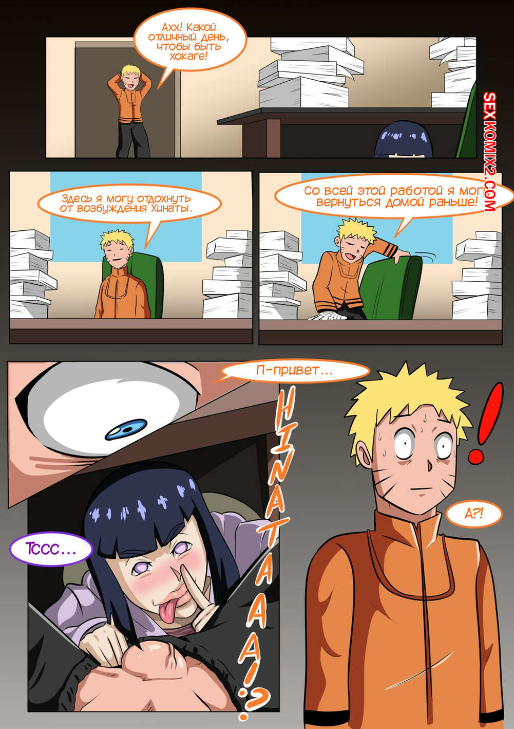Порно комикс Наруто. Похоть Хинаты. Развратная девушка. Hinatas Lust. Mr.Moudan Сексуальная Хината жаждала сперму Наруто и отправилась к нему на работу. Красотка залезла под стол к мужу и стала мощно сосать его большой хуй, наконец получив его сперму.