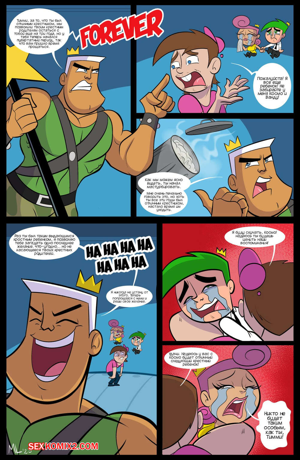 Порно комикс Fairly OddParents. Финальное желание Тимми. Timmys Final Wish. Ameizing Lewds Тимми уже вырос и пришло время ему попрощаться с его крестными родителями. Во время объятия с Вандой парень очень возбудился и стал лапать крестную за заницу, возбуждаясь еще сильнее.