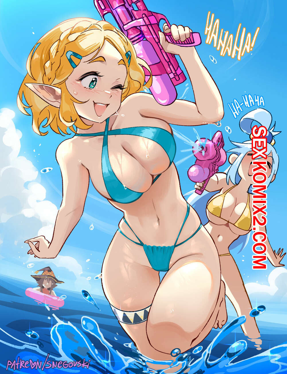 Порно комикс Зельда. ZeldaSuba Beach. Snegovski Две сексуальные блондинки отправились на пляж, где привлекли внимание парни. Он раздел красоток и хорошенько выебал их пизденки, заполнив своей спермой.