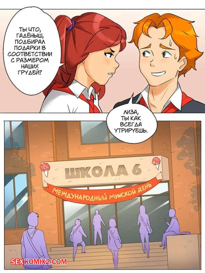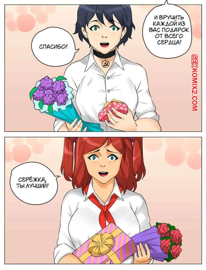 Порно комикс Подарок. Texic. Международный женский день, парень подарил цветы девушкам. Но и сам не остался без подарка, красотки его так отблагодарили, что в яйцах больше нет спермы.