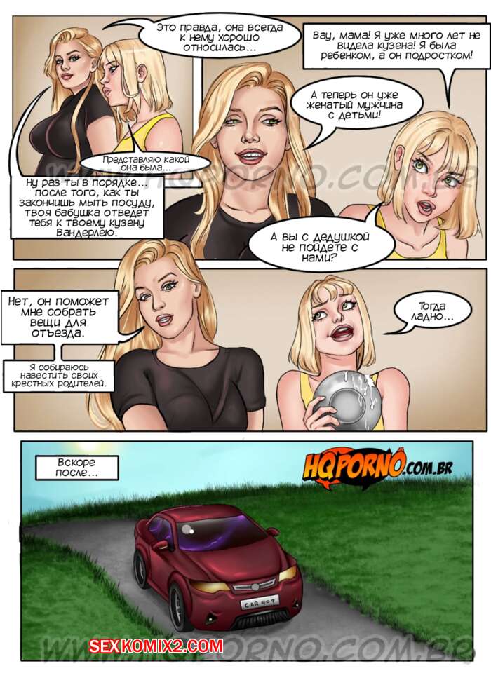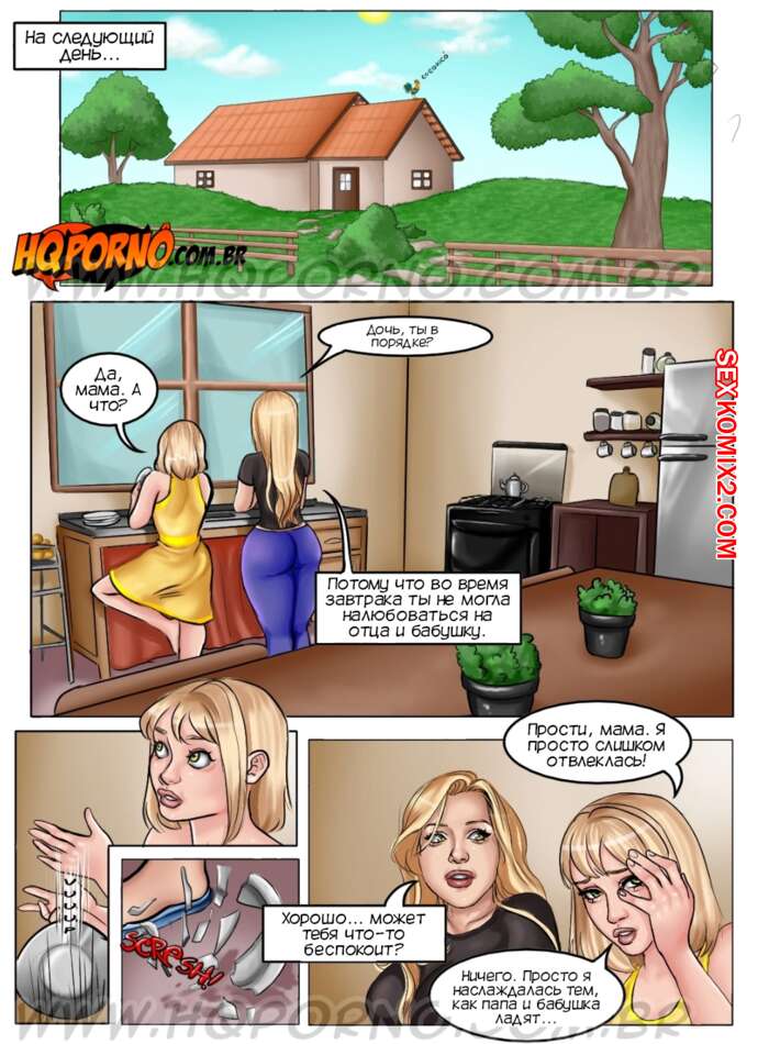 Порно комикс Все в семье. Часть 6. Minha vo e muito puta. Tudo em familia. HQporno Сексуальная блондинка милфа разделась перед мужем своей жены и стала сосать его большой хуй. Сучка дала ему выебать свою пизденку и задницу, пока за ними наблюдала юная Рафа.