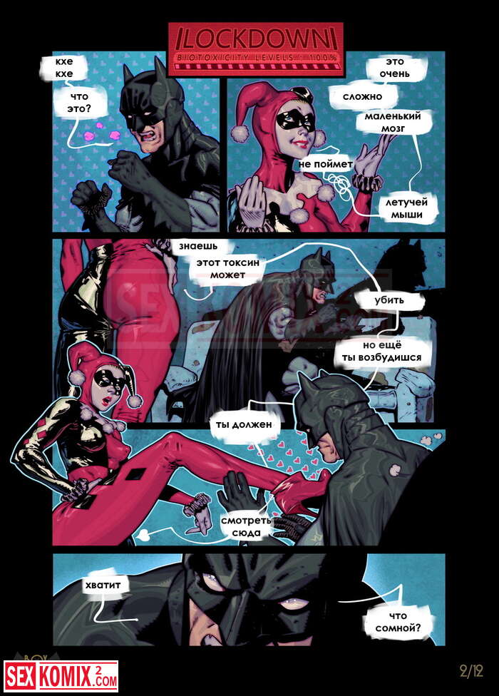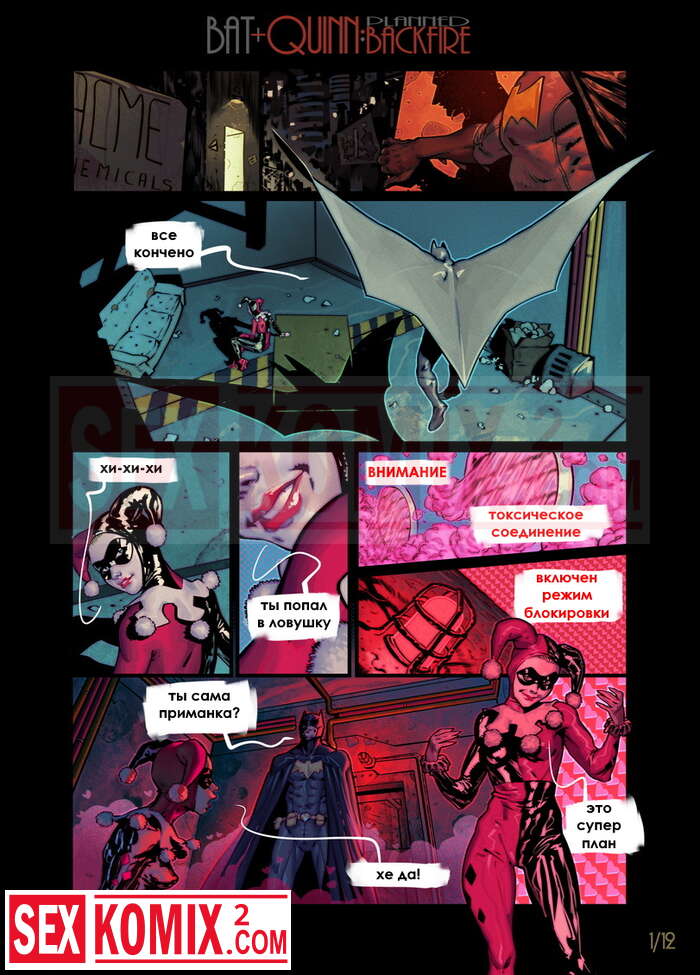 Порно комикс Бэтмен и Харли Квин. План. Он уже подумал что поймал эту шкоду, но Харли распылила газ, от которого Бэтмен возбудился и не мог противостоять чарам девушки.