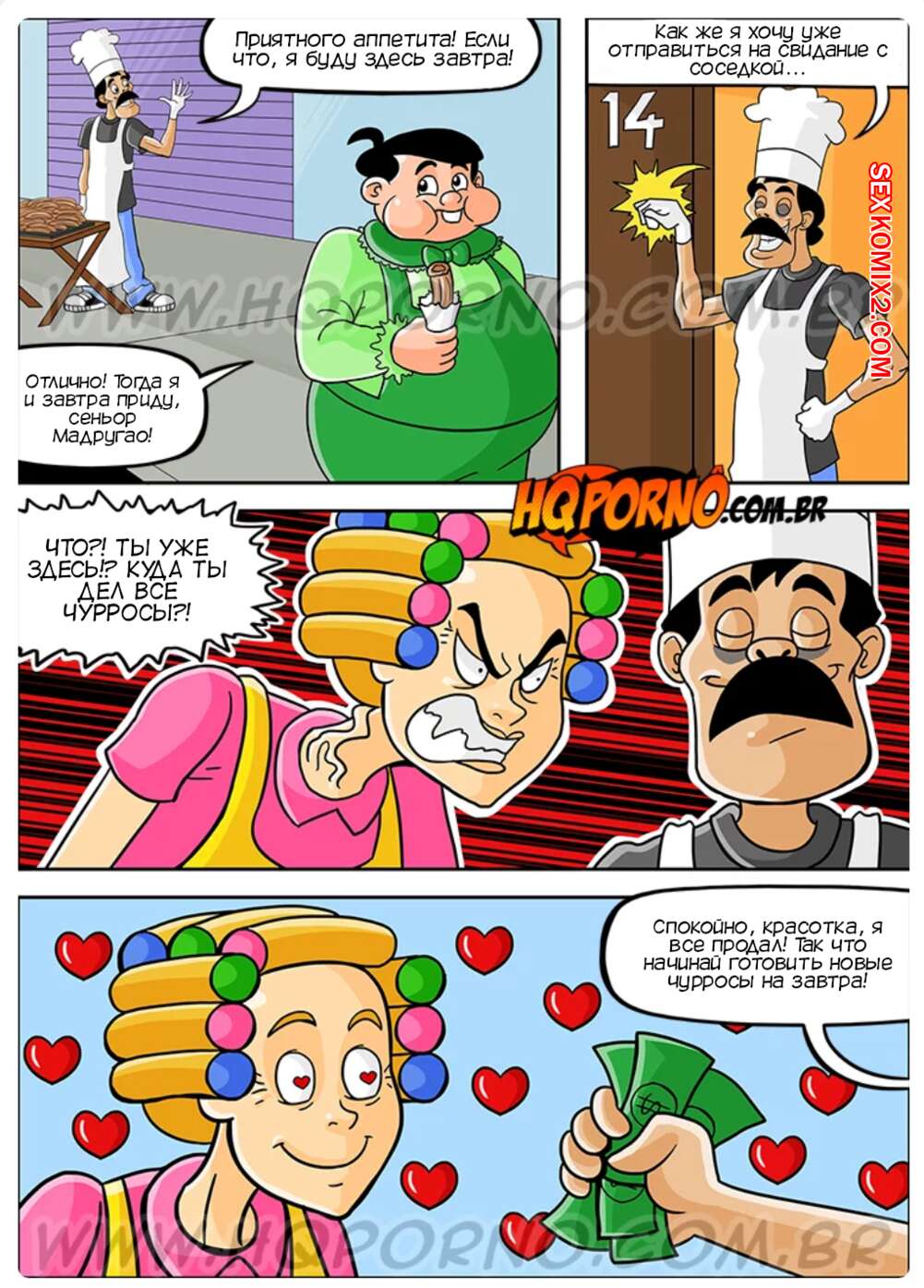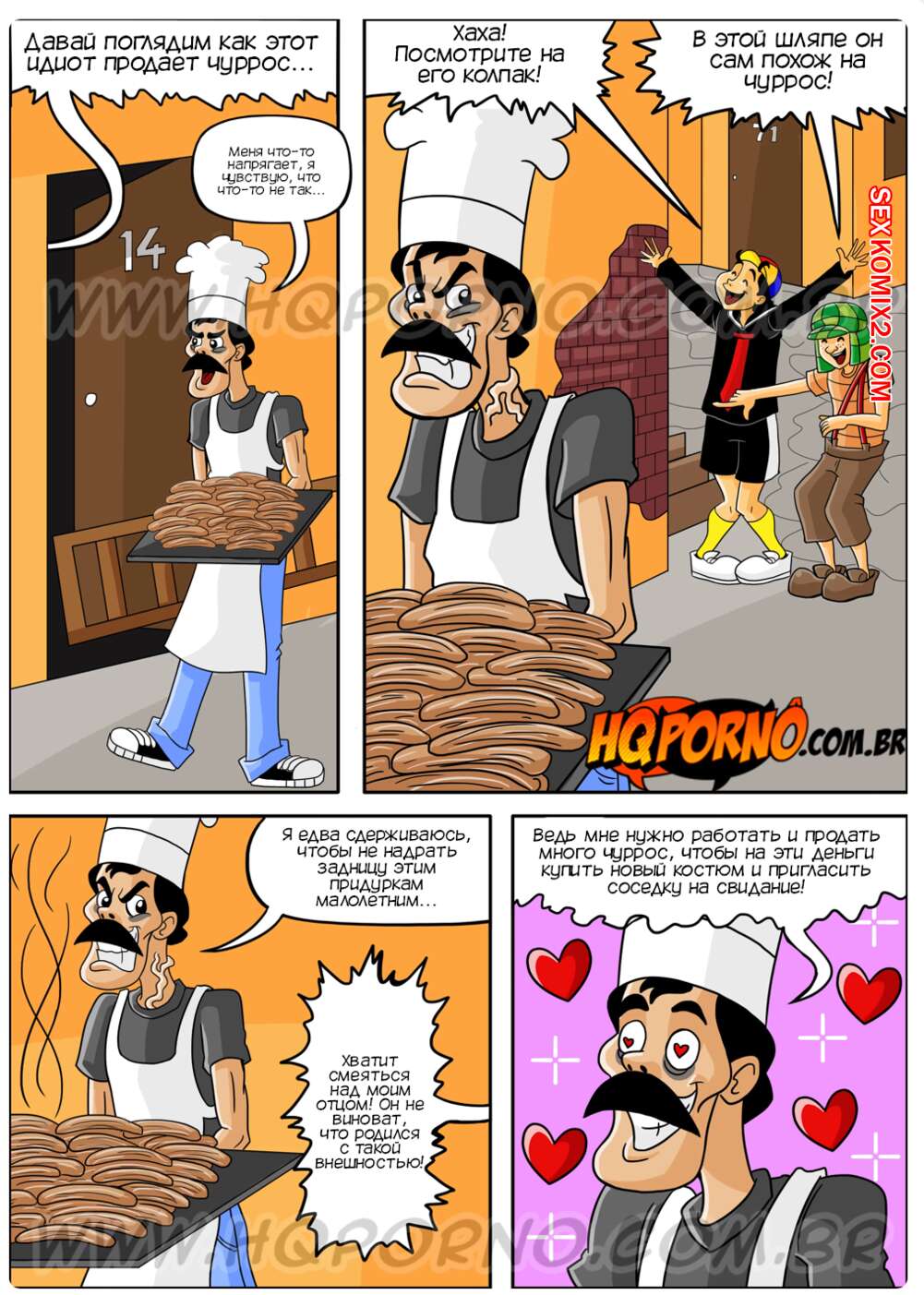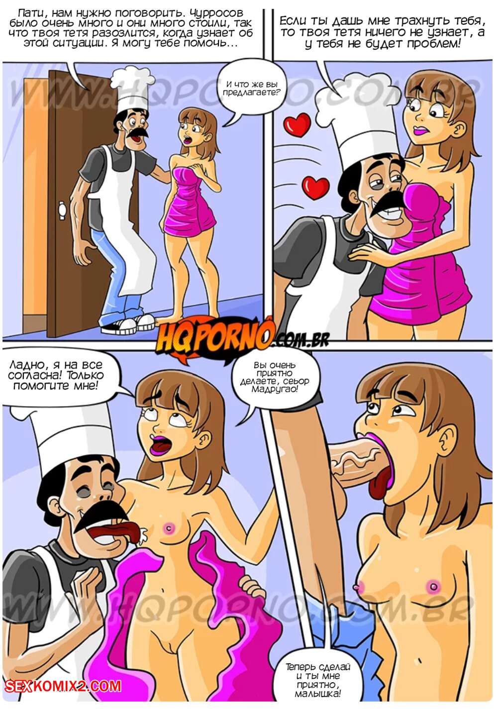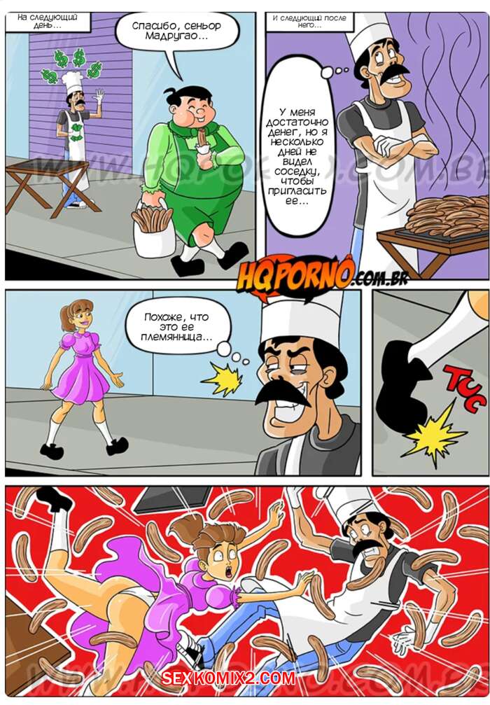 Порно комикс Чавиньо. Часть 10. Chavinho. HQporno Пати сбила все чурросы, что продавал сеньор Мадругао, так что мужик решил воспользоваться моментом, чтобы трахнуть красотку. Она боялась, что ее тетя разозлится, поэтому позволила соседу себя выебать.