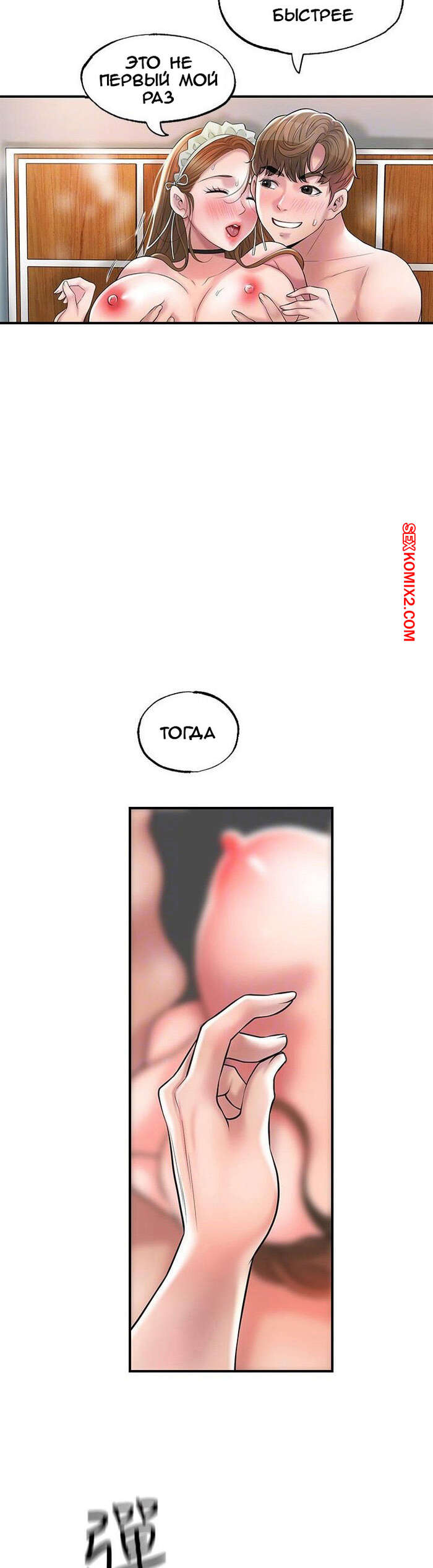 Порно комикс Новый город. Части 77 и 78. New town Сисястая брюнетка в сексуальном костюме горничной была очень возбуждена и хотела трахаться. Она разделась перед своим дружком и отсосала его большой хуй, после чего дала ему себя выебать.