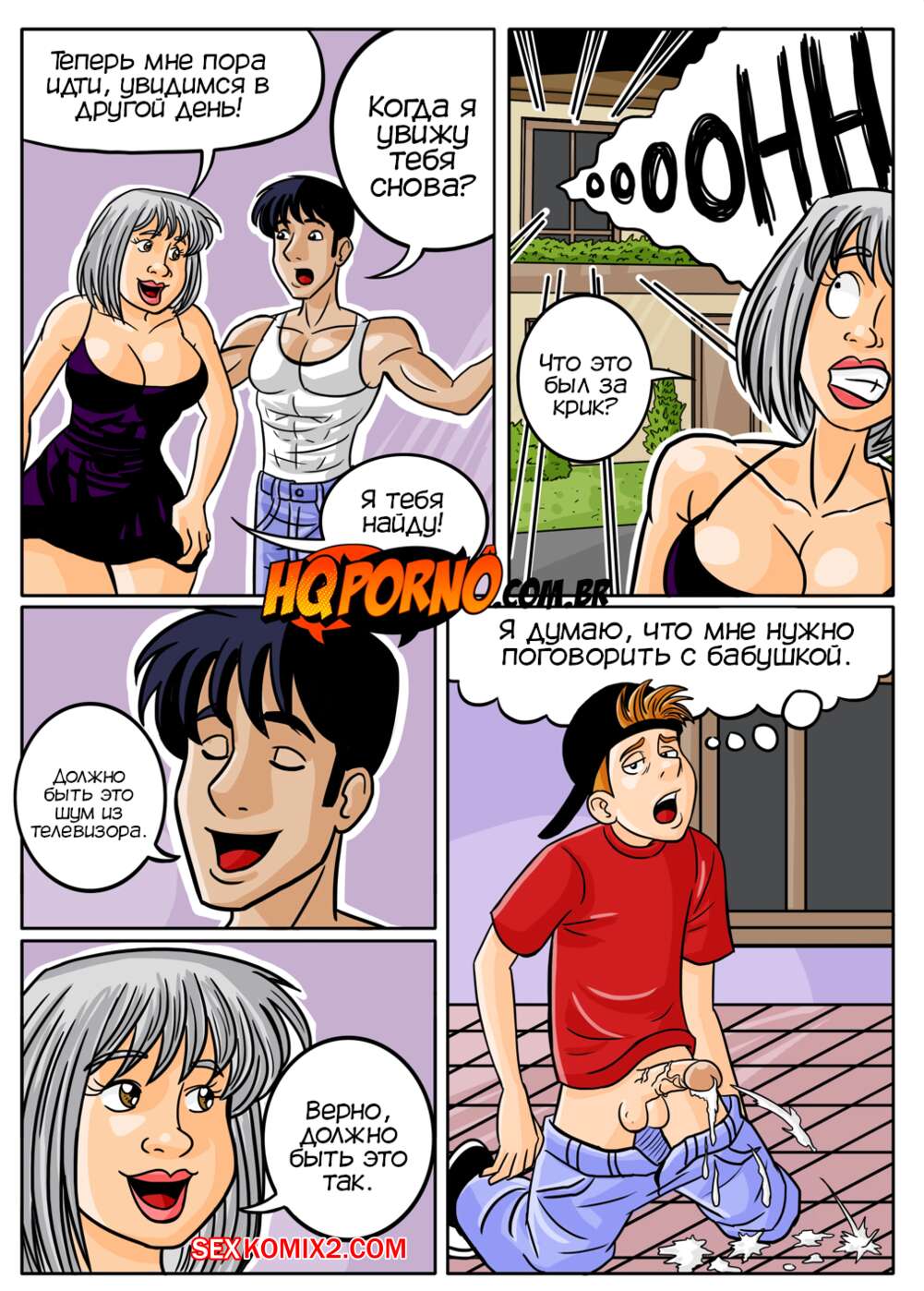 Порно комикс Ягодка опять. Часть 1. A vovozona. HQPorno Молодой парень с мамой приехал к бабушке в гости, но она сразу оставила их одних. Вечером парень услышал странные звуки и увидел, как его горячая бабушка трахается с молодым парнем на улице.
