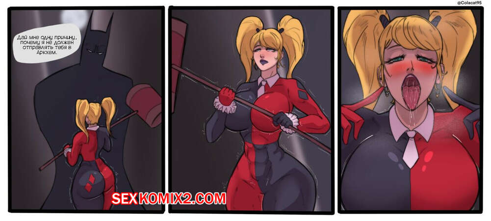 Порно комикс Бэтмен. Харли Квин и Бэтмен. Harley Quinn x Batman. Colacat95. Бэтмен постоянно ловит красотку Харли, а девушка готова на все, чтобы не отправляться в Аркхем. Она раздевается и сосет хуй героя, а также не против и поебаться с ним.