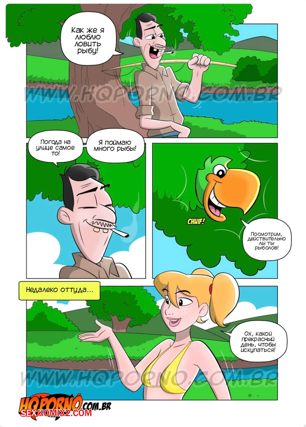 Порно комикс Фелисбинос. Часть 6. Os Felisbinos. HQporno Нерсо отправился на рыбалку, где застал голой дочь своего босса. Мужчина возбудился и не смог сдержаться, поэтому он хорошенько выебал юную красотку и кончил ей на лицо.