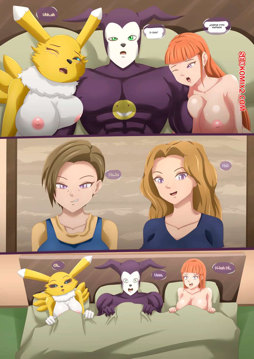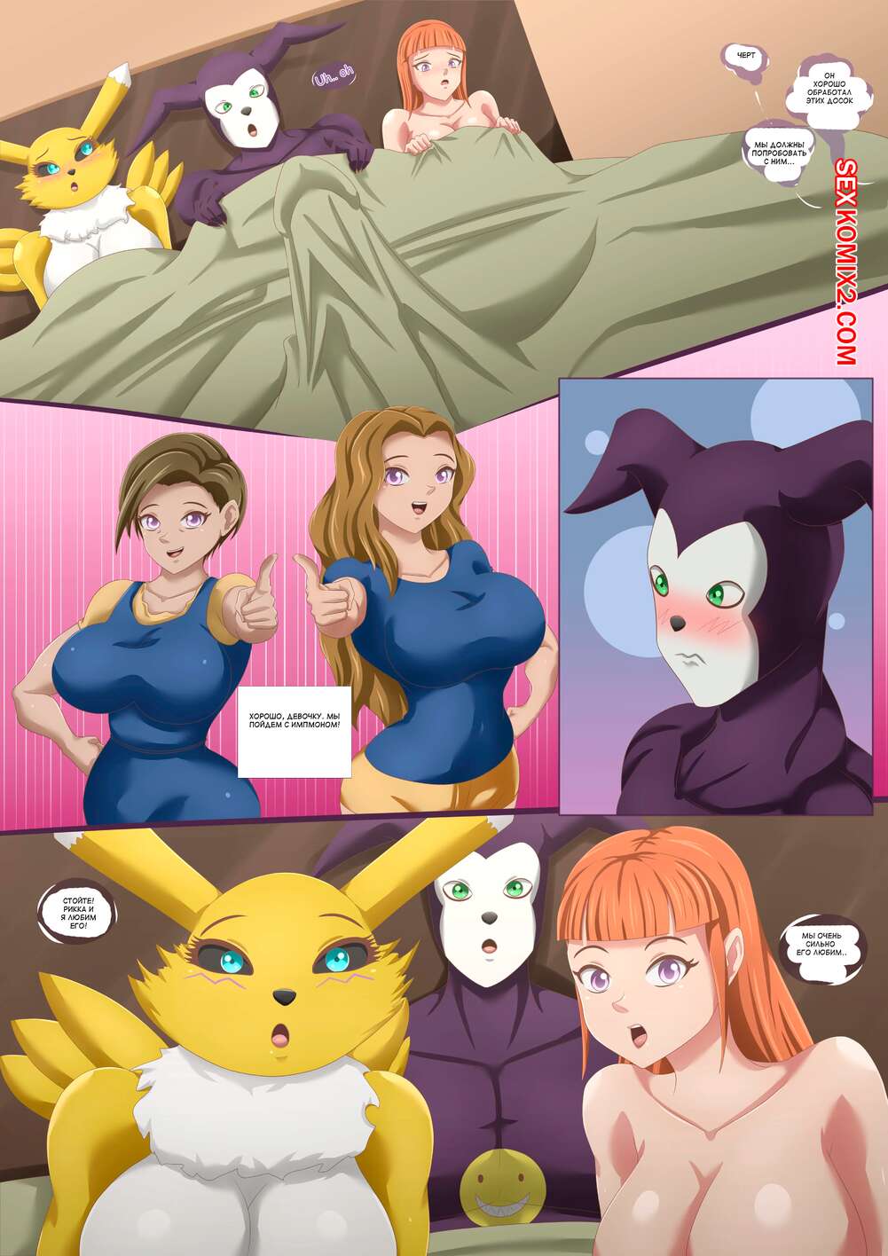 Порно комикс Digimon. Девиация биослияния 2. Biomerge Deviancy. Magnificent Sexy Gals. Горячие красотки застала своего дружка с двумя подругами, которые отдыхали после секса. Девушек это очень возбудило, поэтому они предложили устроить совместную оргию.