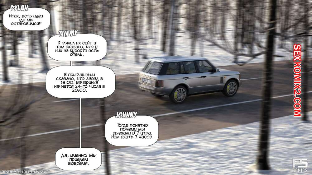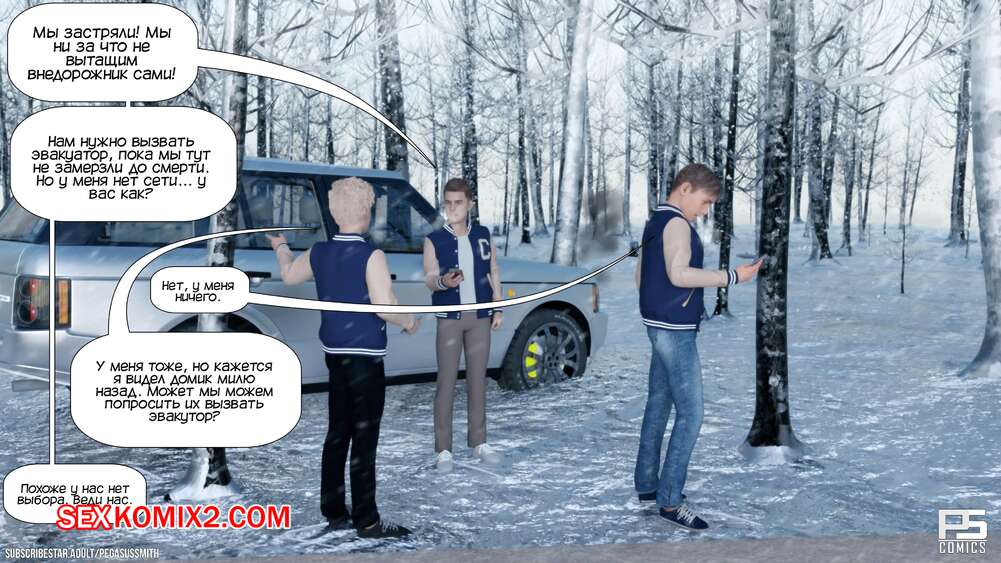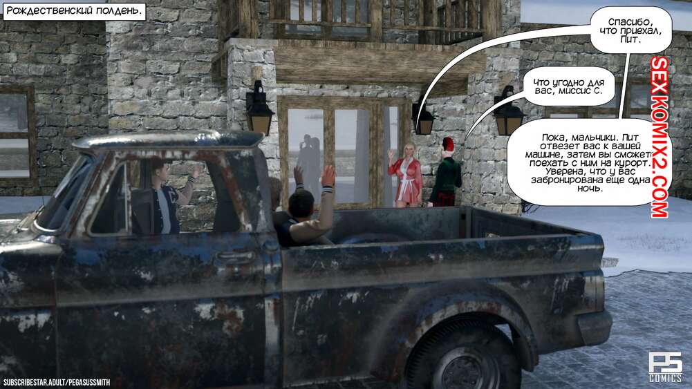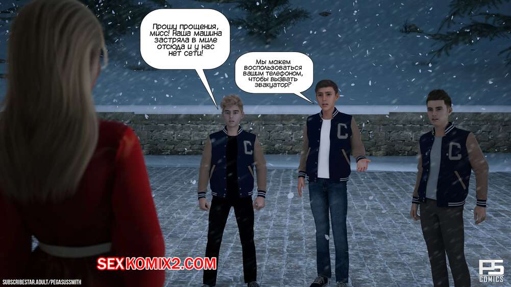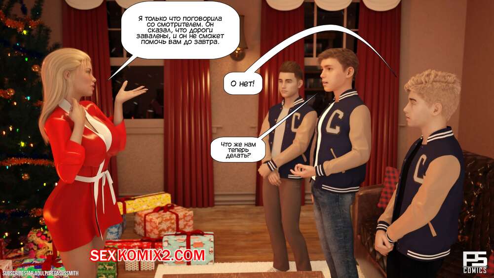 Порно комикс Подарок. Часть 1. The Gift. Pegasus Smith. Молодые парни отправились на рождественскую вечеринку, но их машина застряла в снегу. Парни оказались в доме у сексуальной блондинки милфы, которая разделась перед ними и дала им себя выебать во все дырочки.