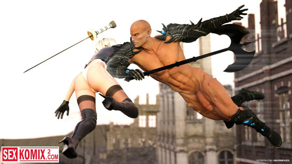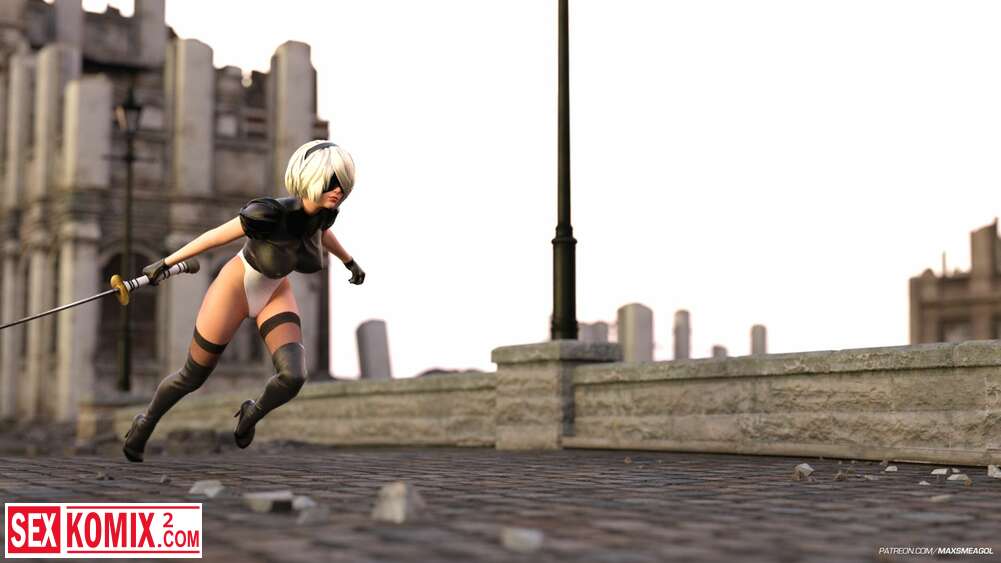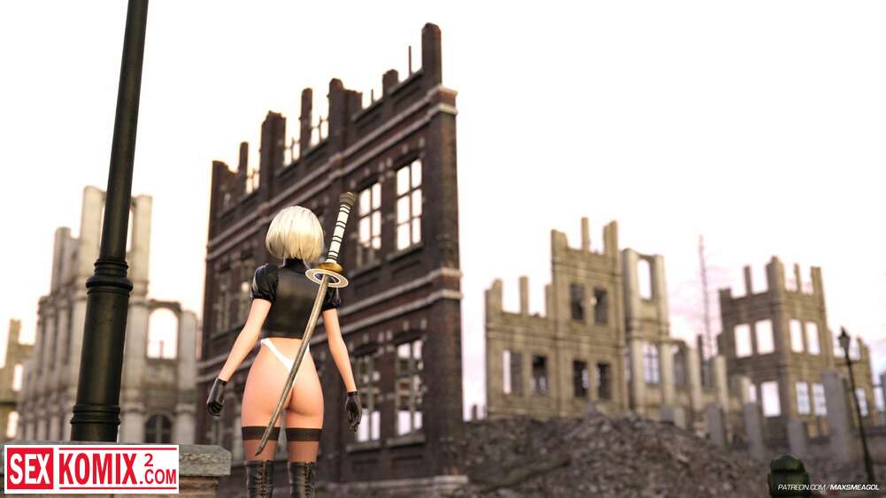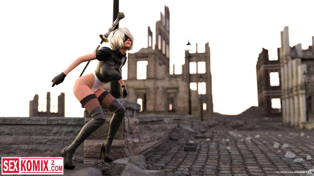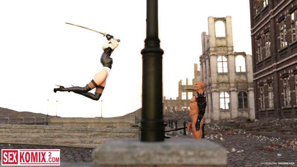 Порно комикс Ева. Стычка. Nier Automata. Девушка киборг встретила сильного врага в заброшенном городе, но он не стал её убивать, а развлекся в её дырочкой.