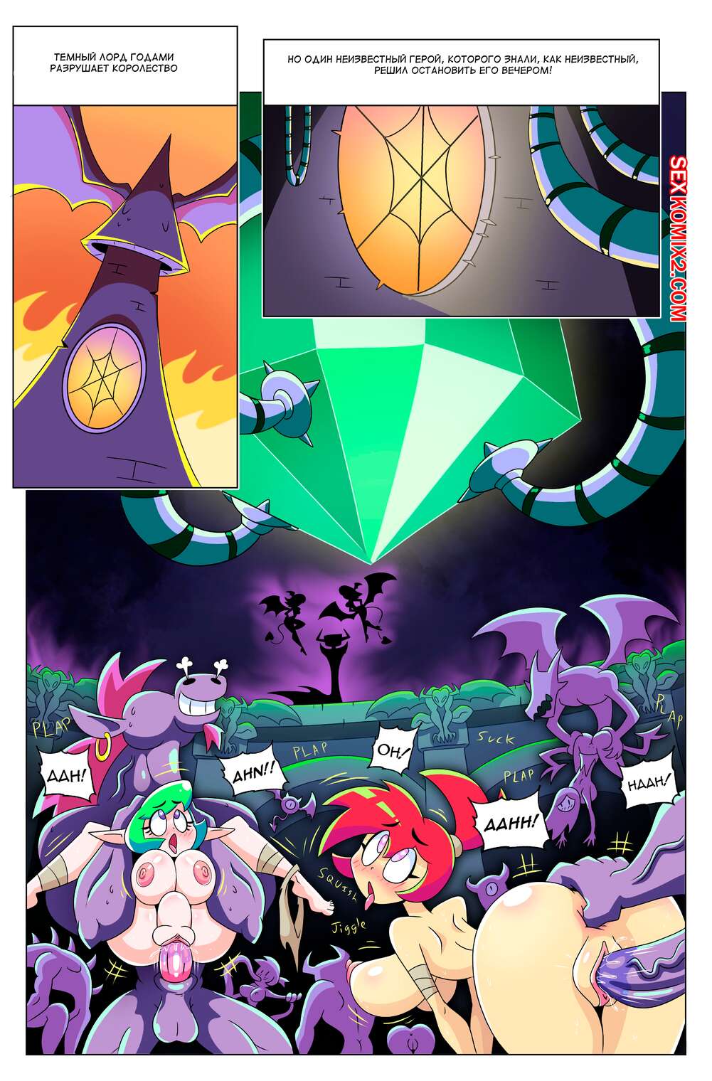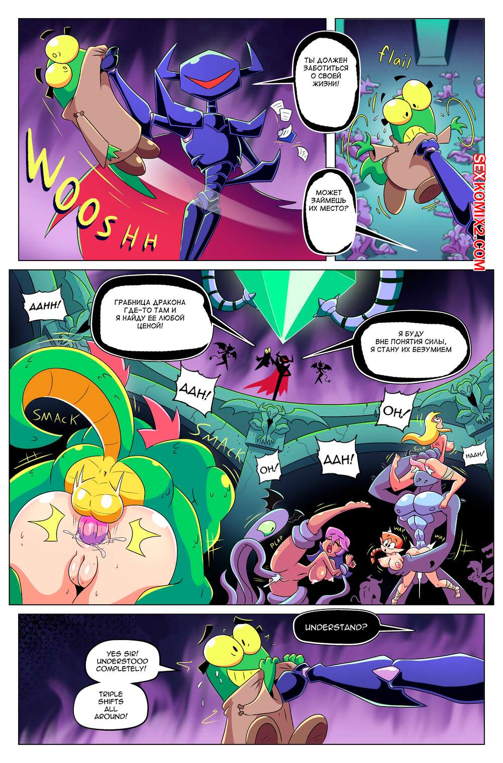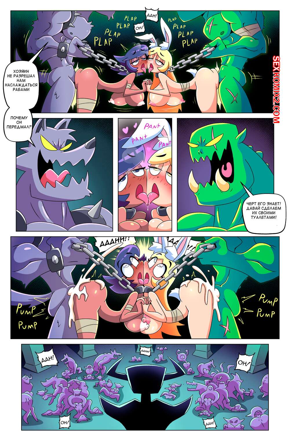 Порно комикс Сисястый квест. Часть 5. Booby Quest. DrShanks24 На сексуальных красоток нападают монстры с большими хуями, желая с ними повеселиться. Они раздевают девушек и дают им отсосать свои большие хуи, после чего ебут их во все дырочки.