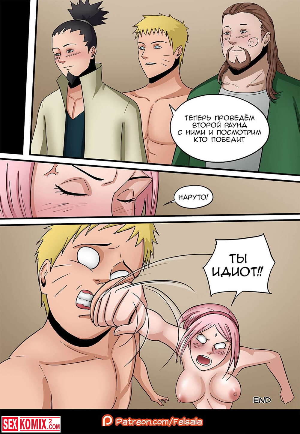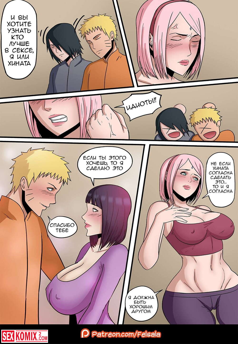 Порно комикс Битва. Между парнями возник спор кто лучше Хината или Сакура, и что бы это проверить, нужно трахнуть девушек.