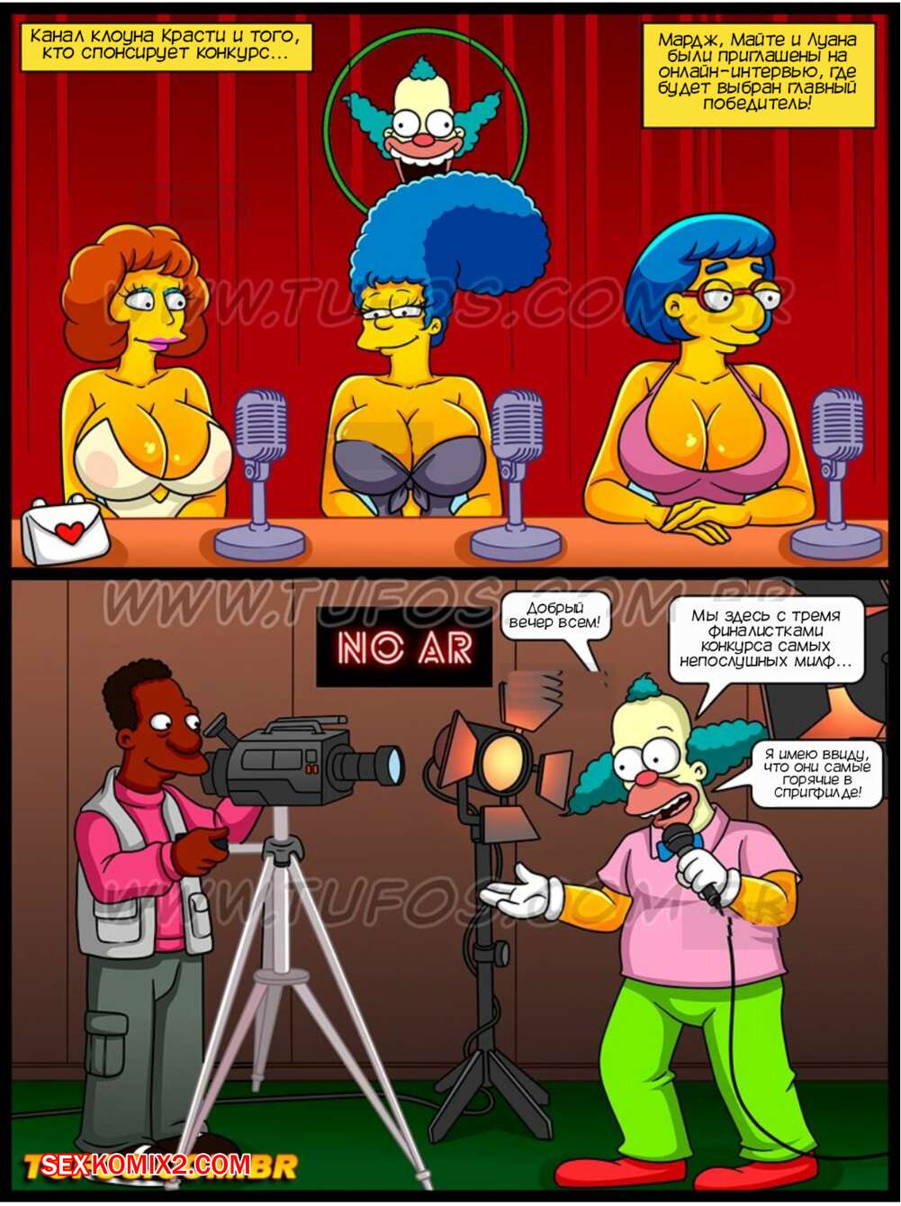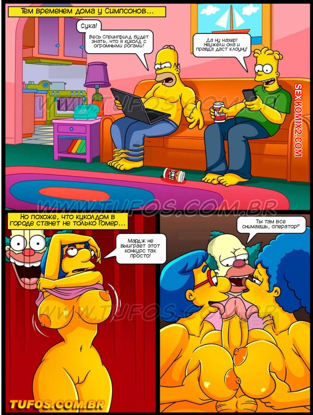 Порно комикс Симпсоны. Часть 57. Самая крутая милфа в городе. Os Simptoons. Tufos Три красотки отправились на конкурс за звание самой горячей милфы Спрингфилда. Им задали провокационные вопросы о сексе, поэтому они решили раздеться и наглядно ответить на вопросы, устроив нереальную оргию.