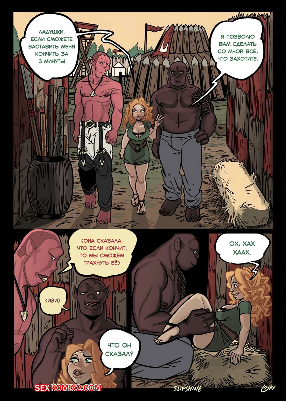 Порно комикс Балст. Часть 5. Обнаженная и подевичьи прекрасная. Ovens Сексуальная брюнетка оказалась в лагере орков, где два парня решили с ней повеселиться. Они раздели девушку и дали ей отсосать свои большие хуи, после чего выебали ее в пизду и задницу.