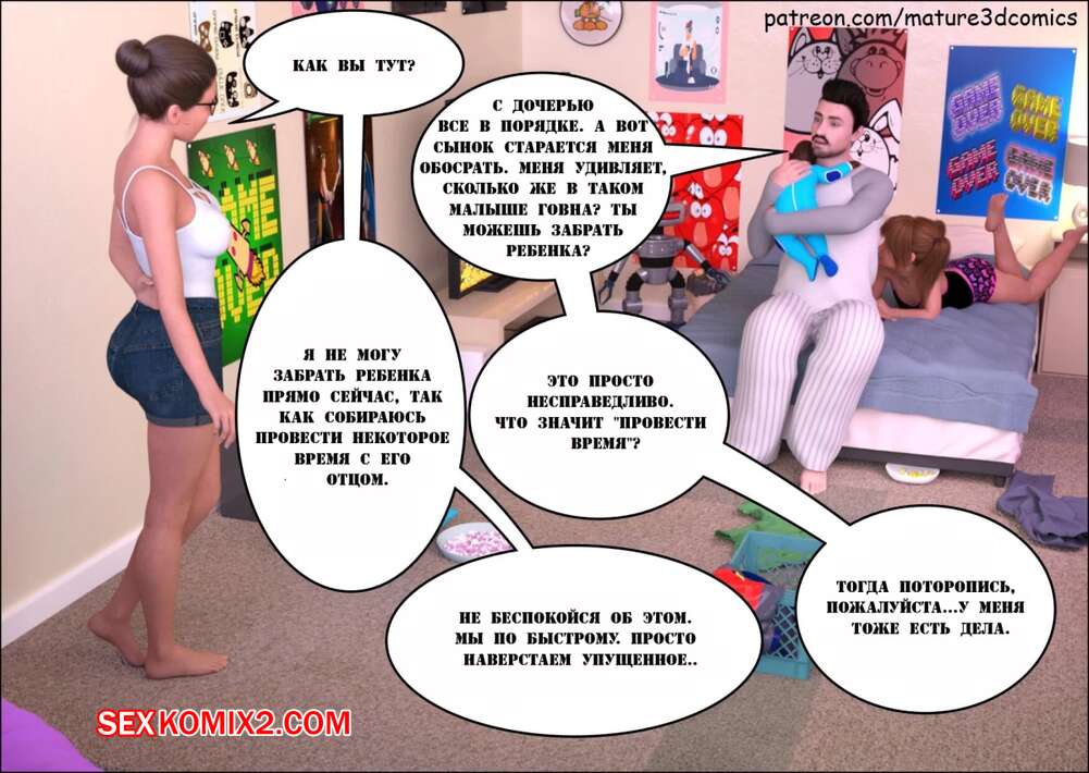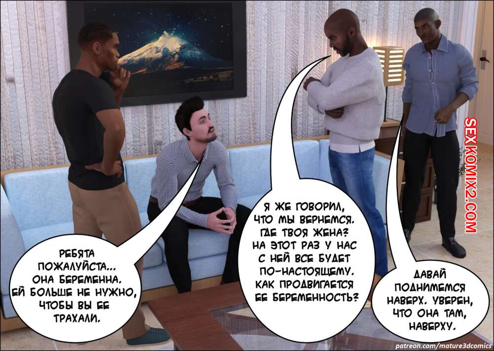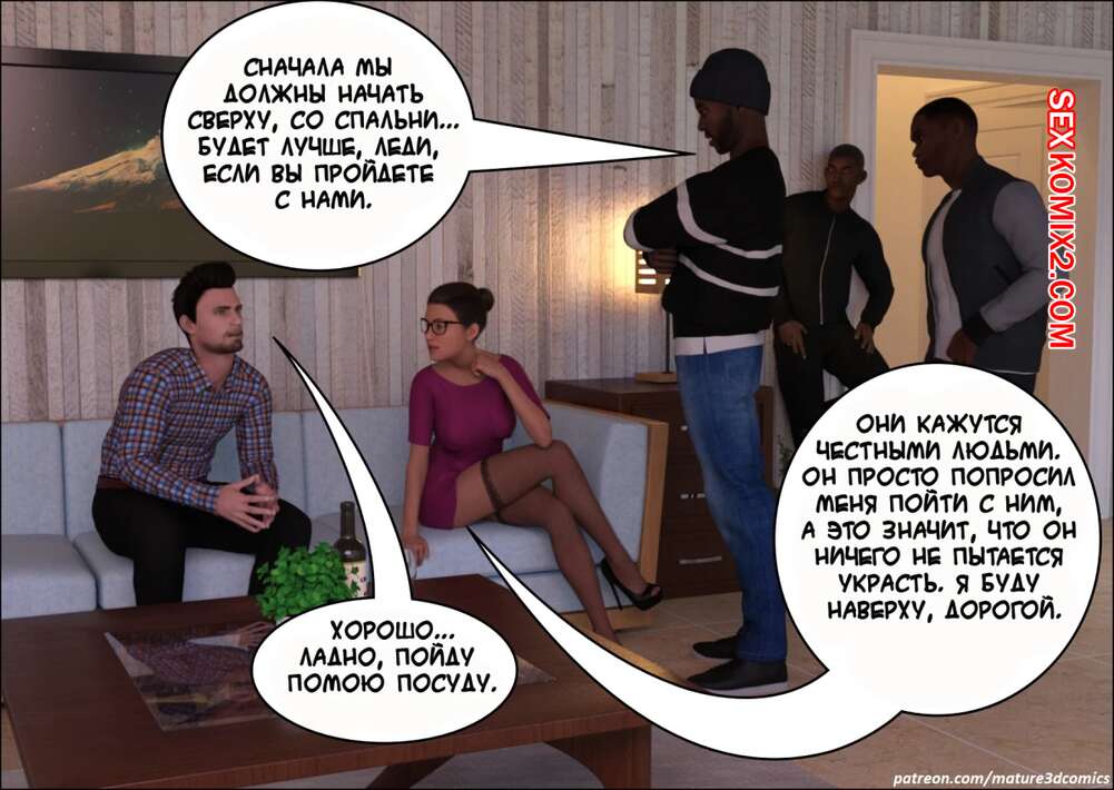 Порно комикс Шлюха жена. Mature3dcomics В дом к горячей милфе и ее семье пришли темнокожие парни. Они отвели красотку в спальню, где хорошенько выебали ее во все дырочки, заполнив ее своей спермой.