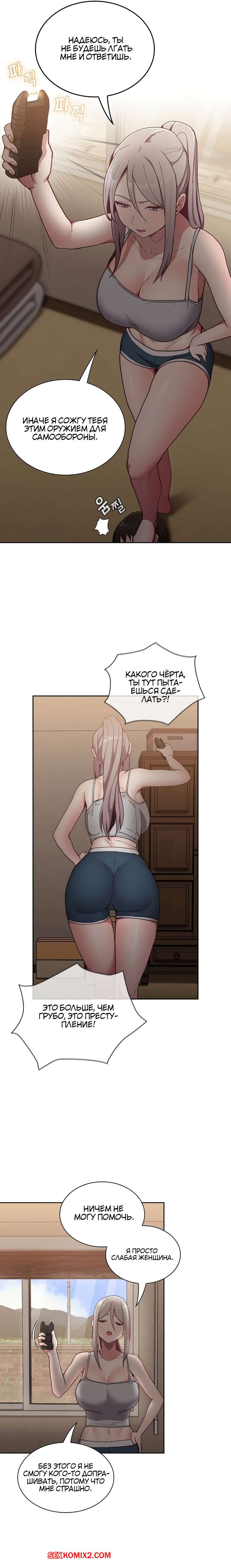 Порно комикс Реабилитация горничной. Части 32 и 33 и 34. Maid Rehabilitation Сексуальная брюнетка решила повеселиться со своим дружком. Она оставила его в трусах и связала парня, после чего стала возбуждать его и дразнить, лаская его член.