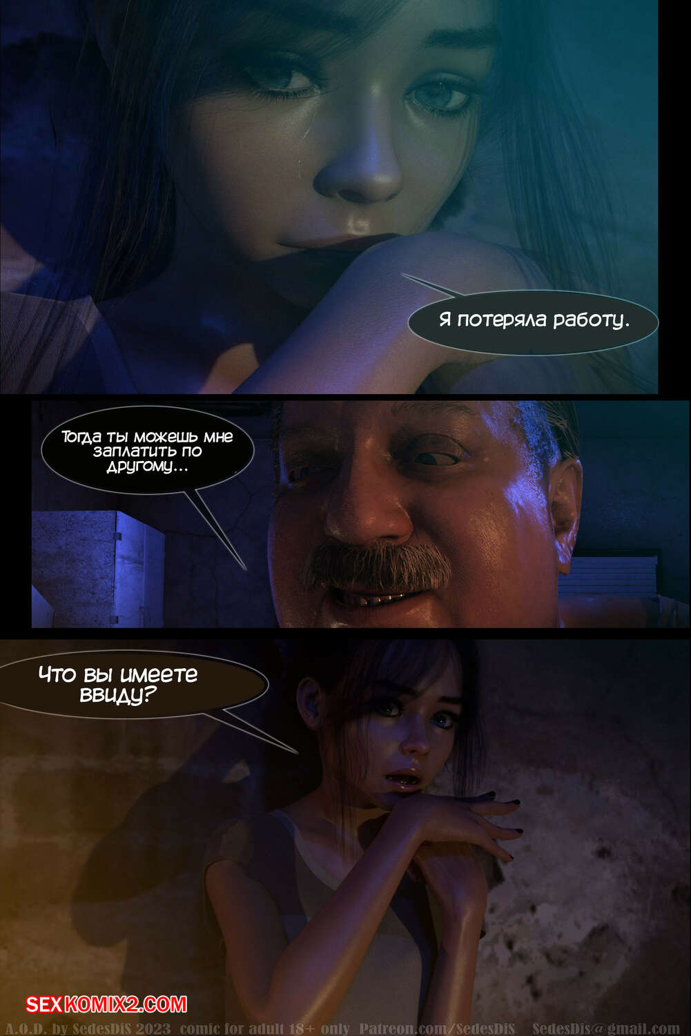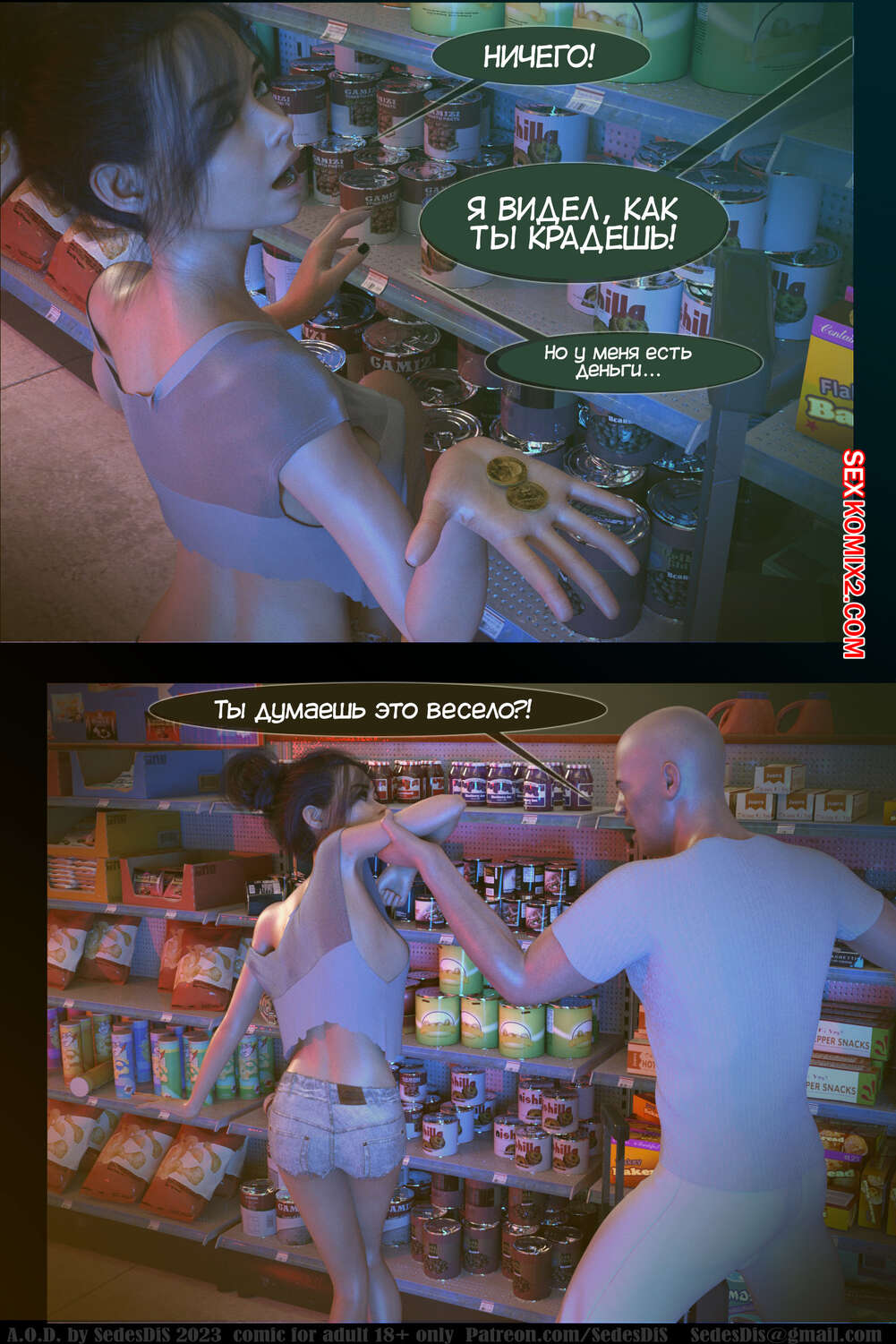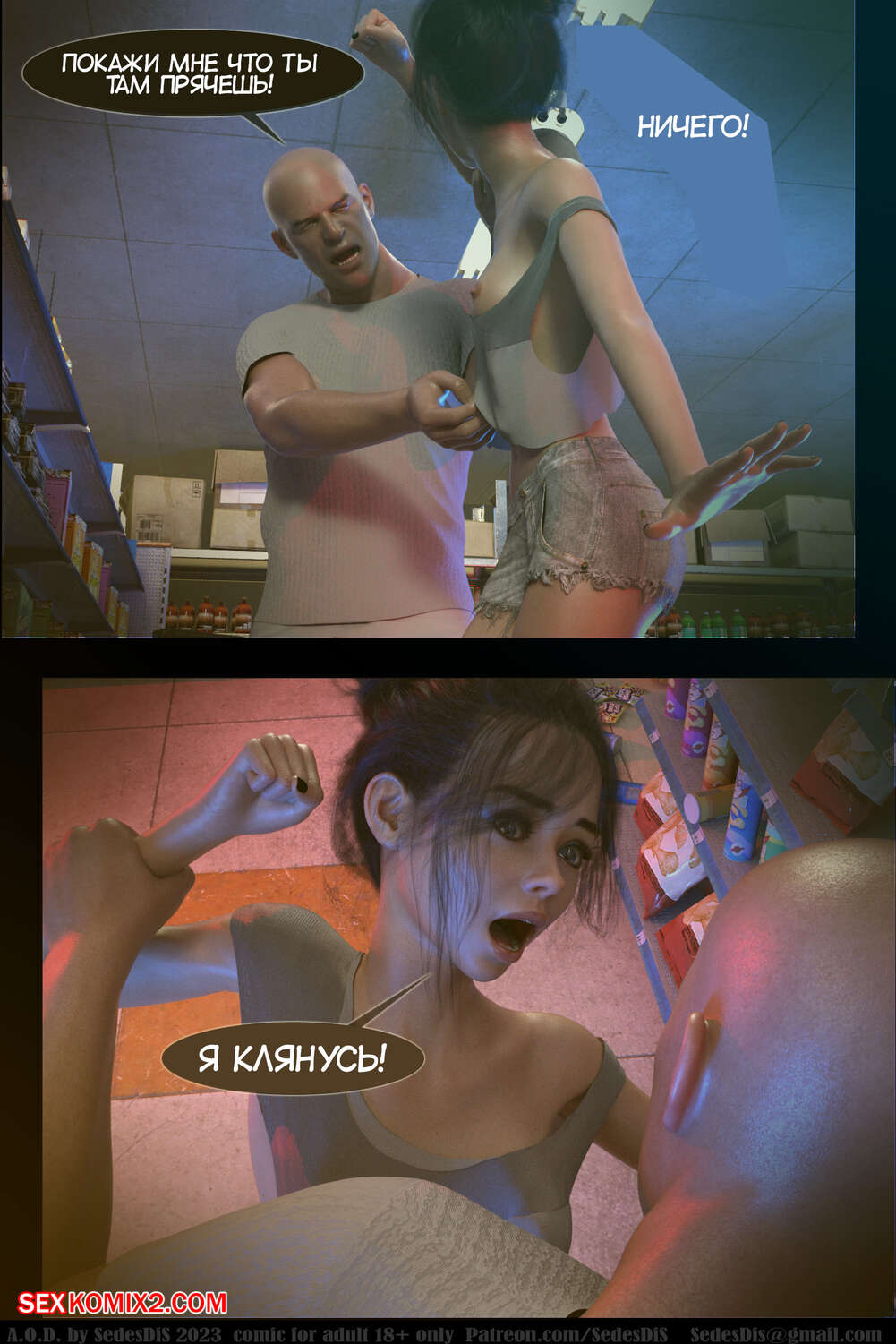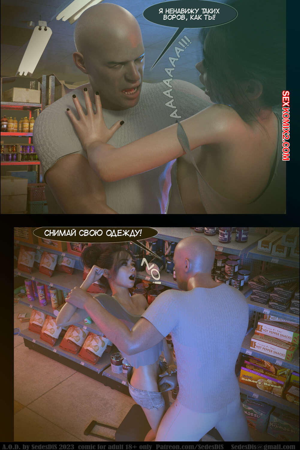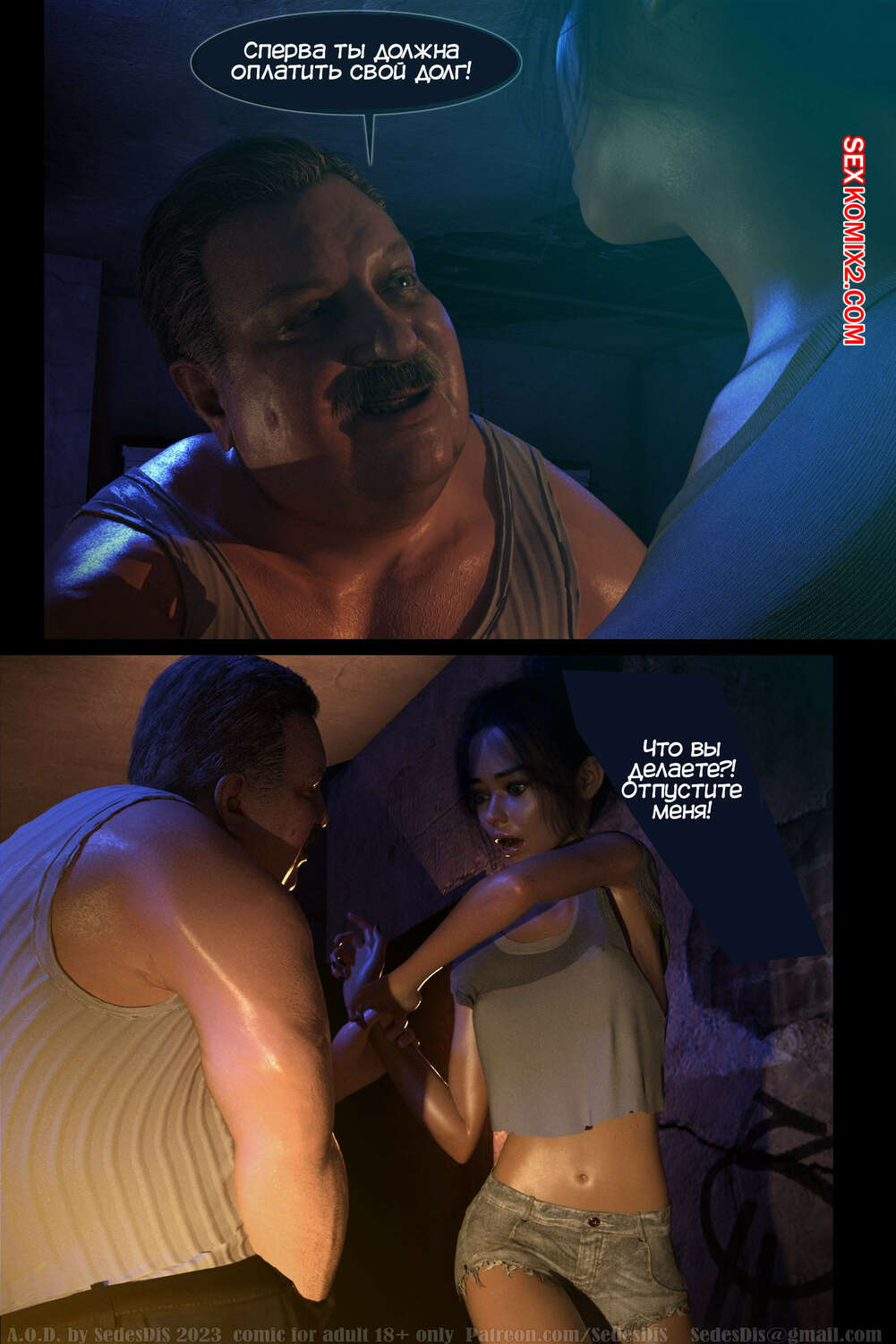 Порно комикс A.O.D. Часть 1. SedesDiS. Молодая горячая брюнетка потеряла работу и теперь у нее возникли проблемы с деньгами. Сперва на нее набросился мужик и трахнул, чтобы получить оплату за жилье, после чего на девушку напал владелец магазина, чтобы проучить красотку за кражу.