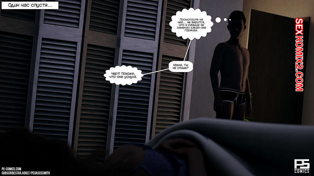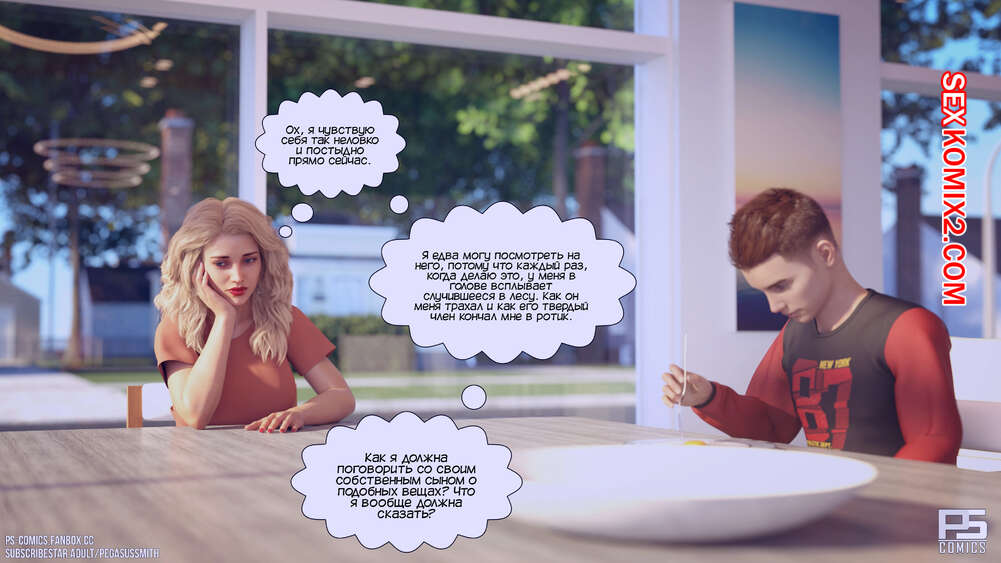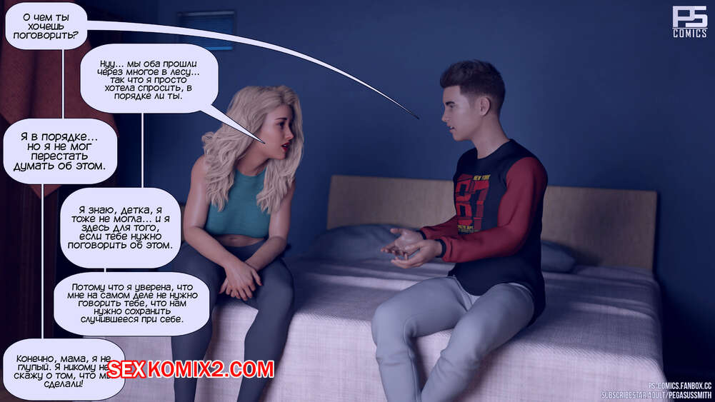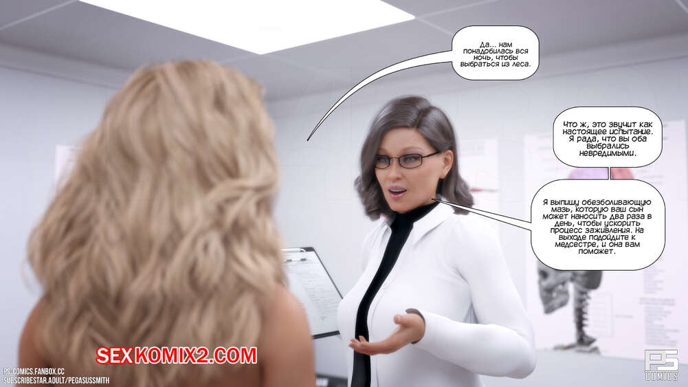 Порно комикс Заблудившиеся в лесу. Часть 3. Lost In The Woods. Pegasus Smith После происшествия мама отвела своего сына к врачу, чтобы его обследовали. Следующим утром красотка пошла принять душ, чтобы расслабиться, и сама не заметила, как начала ласкать свою пизденку.