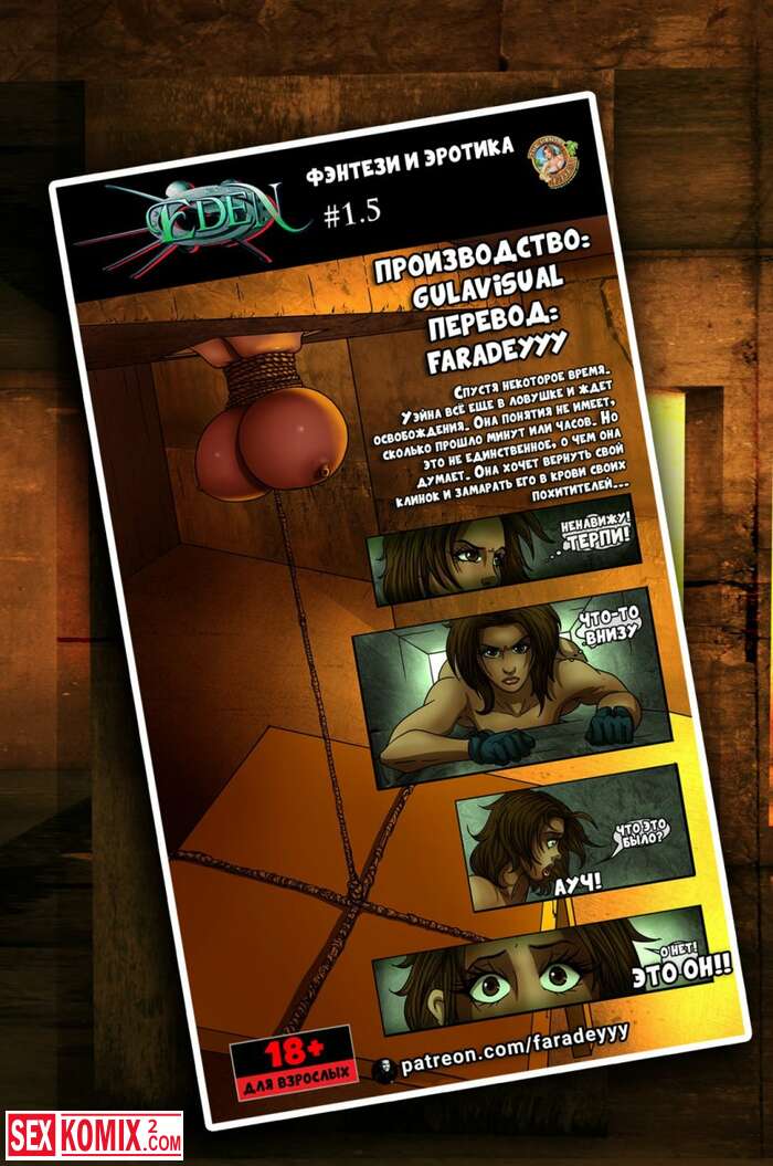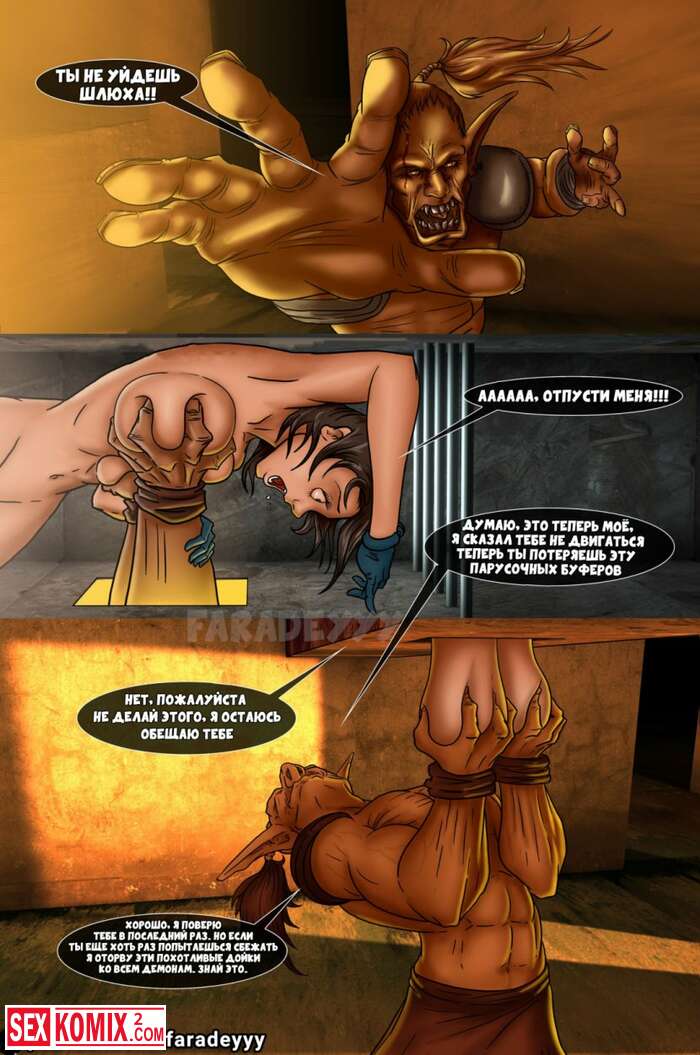 Порно комикс Эдем. Гоблины держали в заточении девушку с большими сиськами, она попыталась сбежать, но груди помешали побегу.
