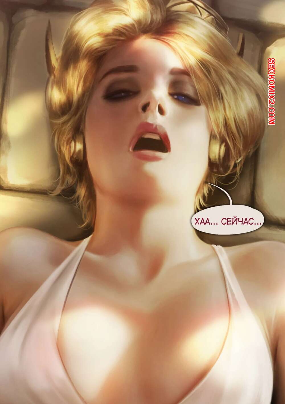 Порно комикс Overwatch. Мёрси Тайное свидание. Firolian Сексуальная блондинка была очень возбуждена и хотела трахаться. Она разделась перед своим дружком и возбудила его шикарным телом, после чего дала ему себя выебать в пизду и задницу.
