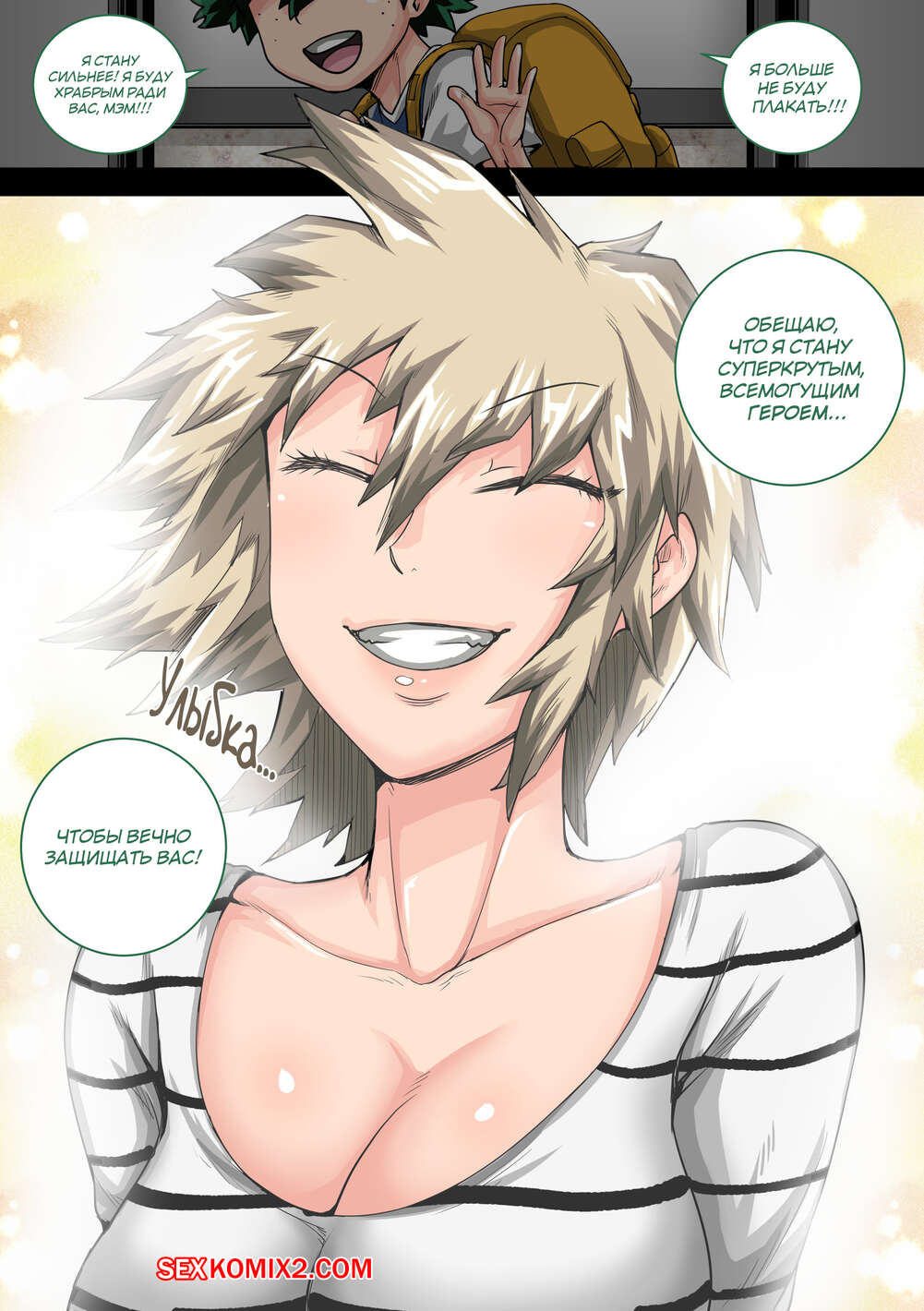 Порно комикс Академия. Летние каникулы с мамой Бакуго. Часть 3.2. Juna Juna Juice Деку набросился на сексуальную милфу блондинку и стал ее трахать изо всех сил, что у него есть. Дама была против такого обращения с собой и стала отталкивать парня и пытаться его вразумить.