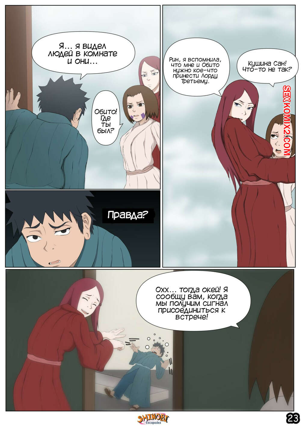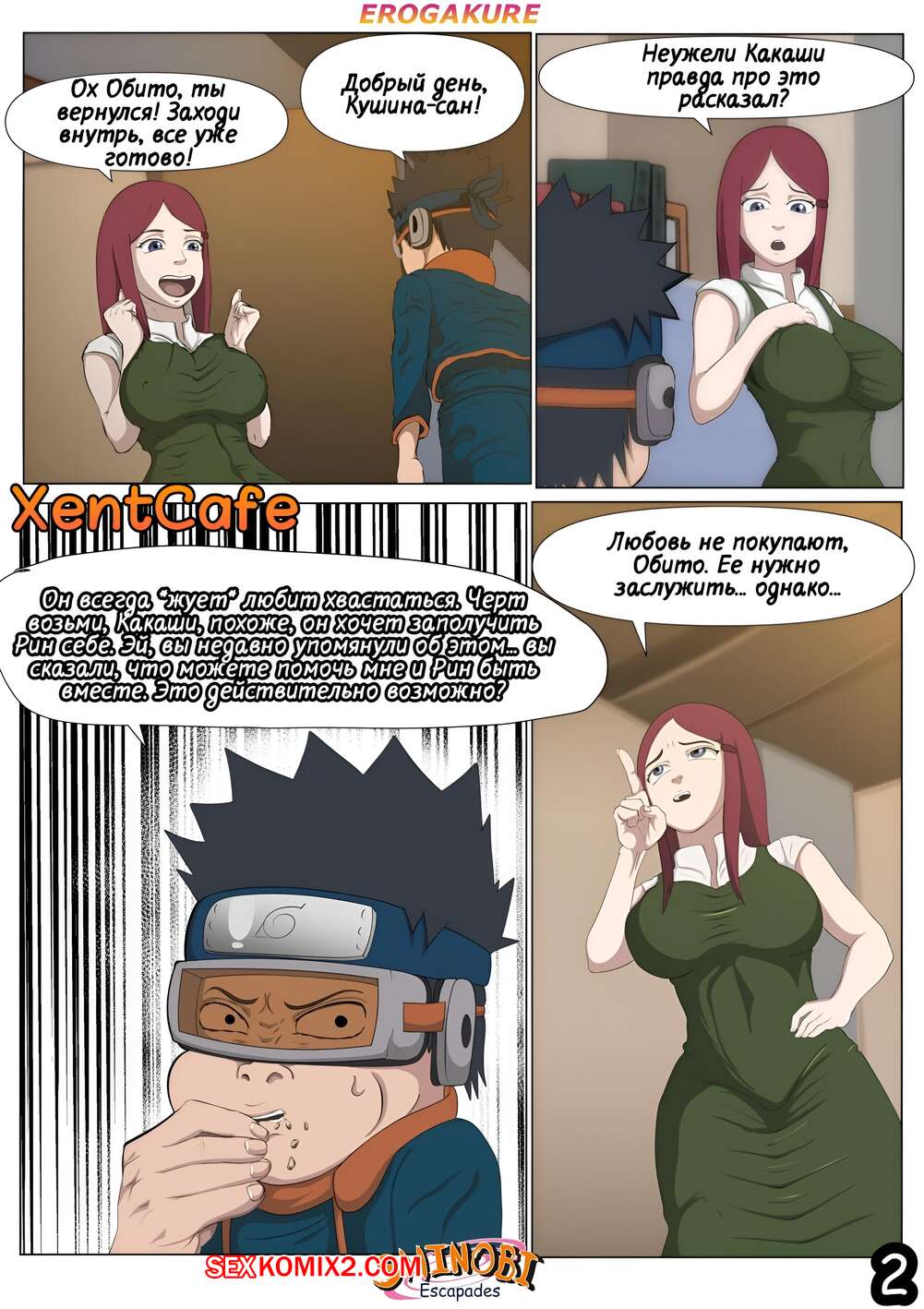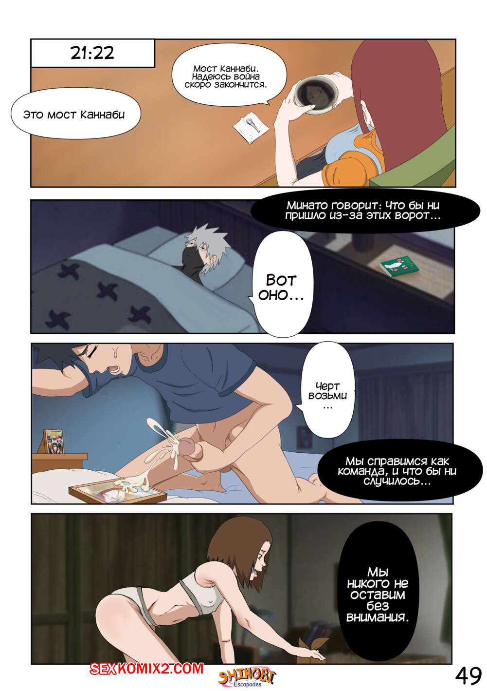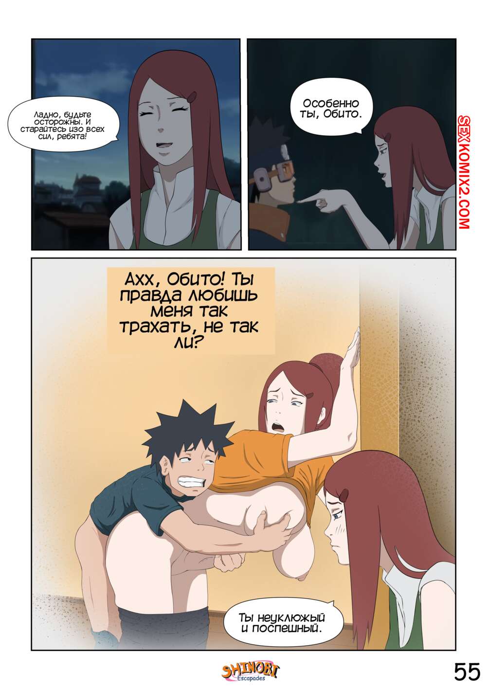 Порно комикс Наруто. Эскапады Шиноби. Часть 2 Обито пришел домой к Кушине и горячая милфа решила повеселиться с парнем. Она стала соблазнять и возбуждать парня, демонстрируя ему свое шикарное тело, желая ощутить большой хуй парня в себе.