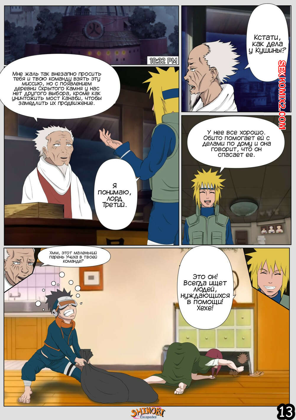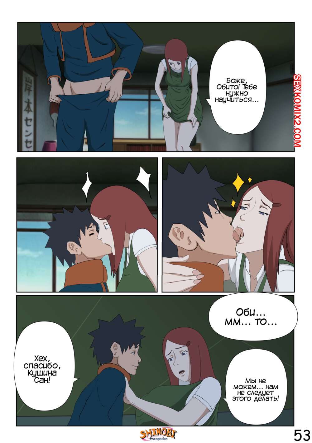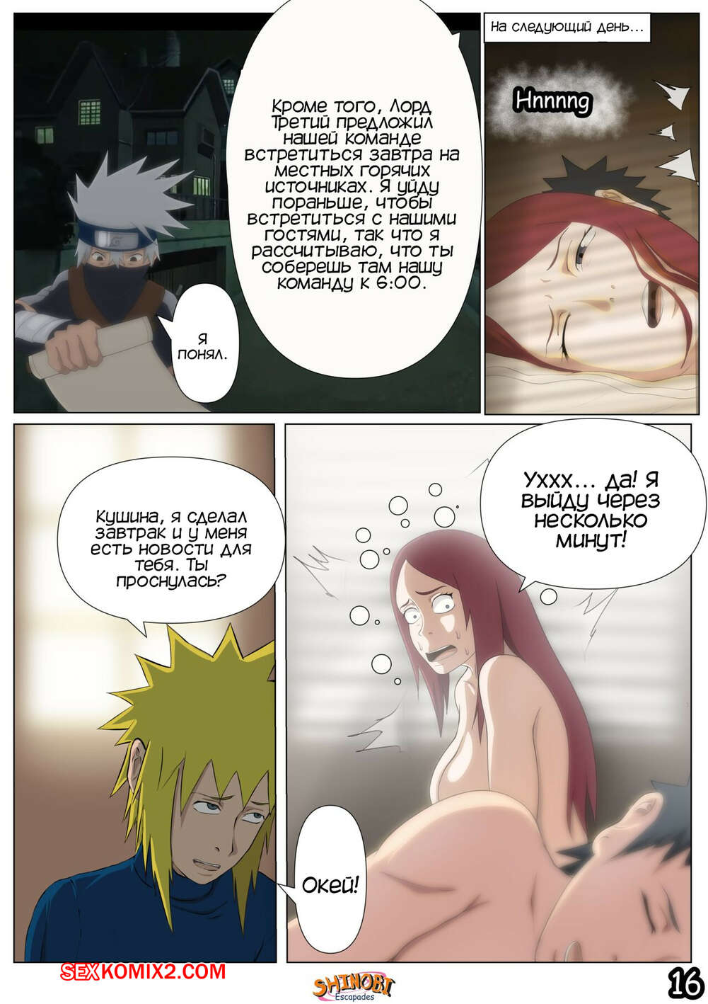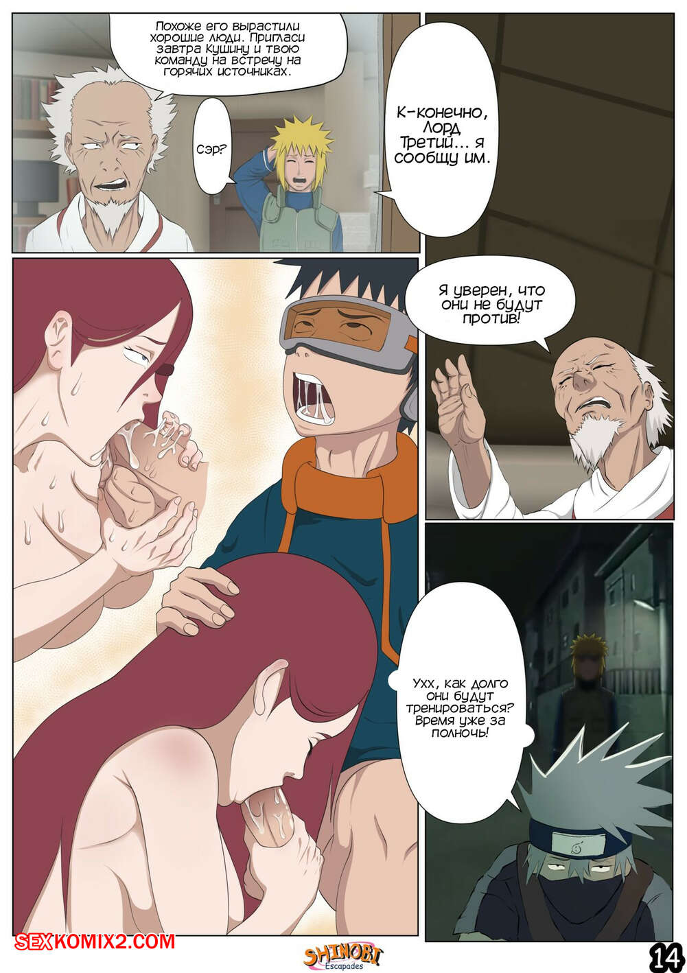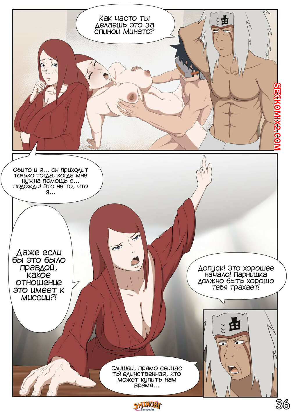 Порно комикс Наруто. Эскапады Шиноби. Часть 2 Обито пришел домой к Кушине и горячая милфа решила повеселиться с парнем. Она стала соблазнять и возбуждать парня, демонстрируя ему свое шикарное тело, желая ощутить большой хуй парня в себе.