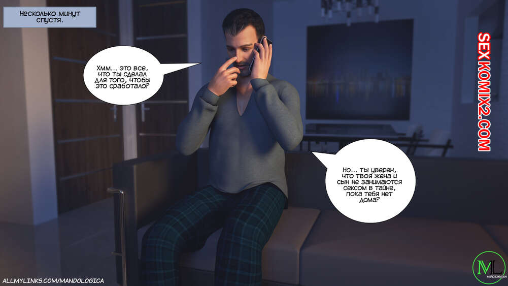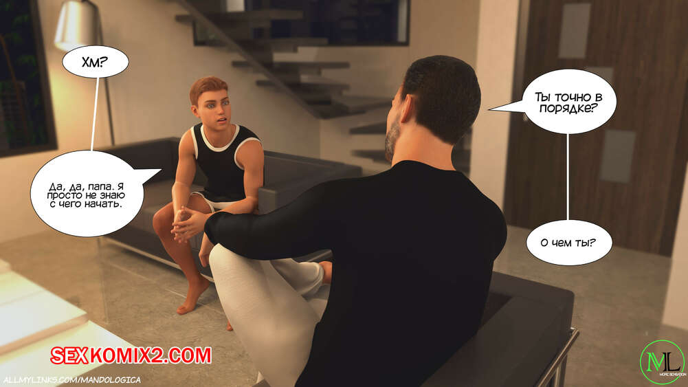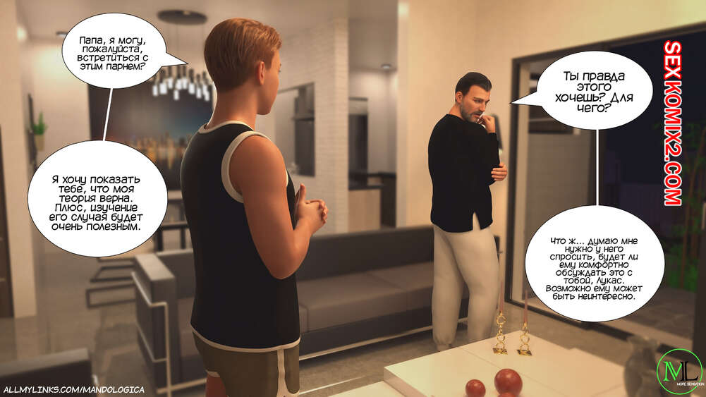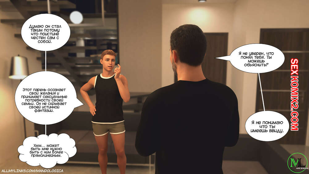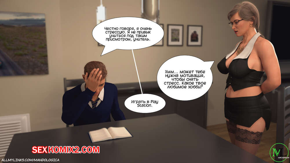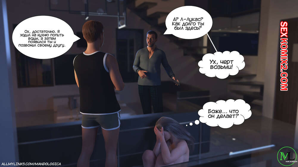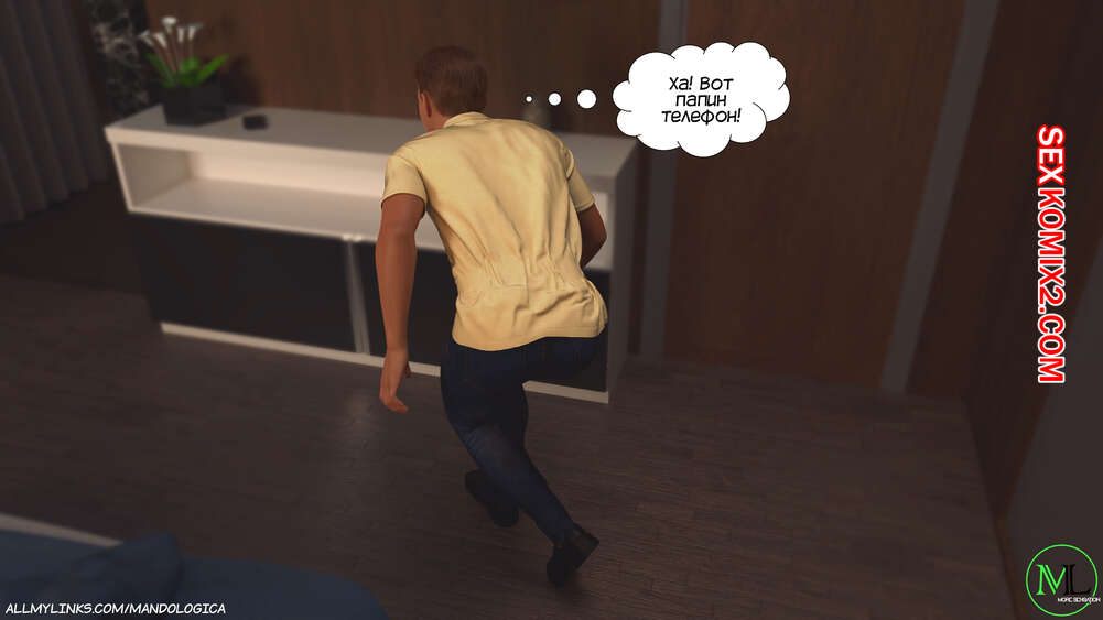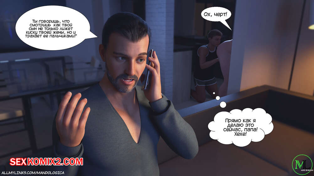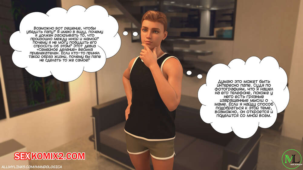 Порно комикс Разрушение границ. Часть 7. Breaking Boundaries. MandoLogica Адрианна купила сексуальный наряд, чтобы воплотить сексуальную фантазию Лукаса. Красотка дала ему почитать комикс, а сама стала вертеть перед ним своей задницей, соблазняя сына.