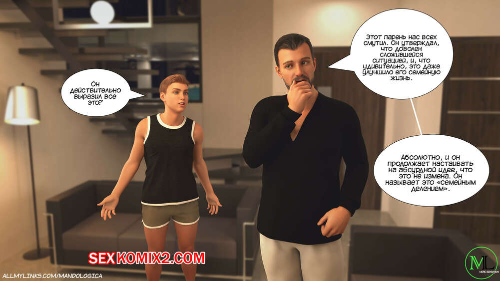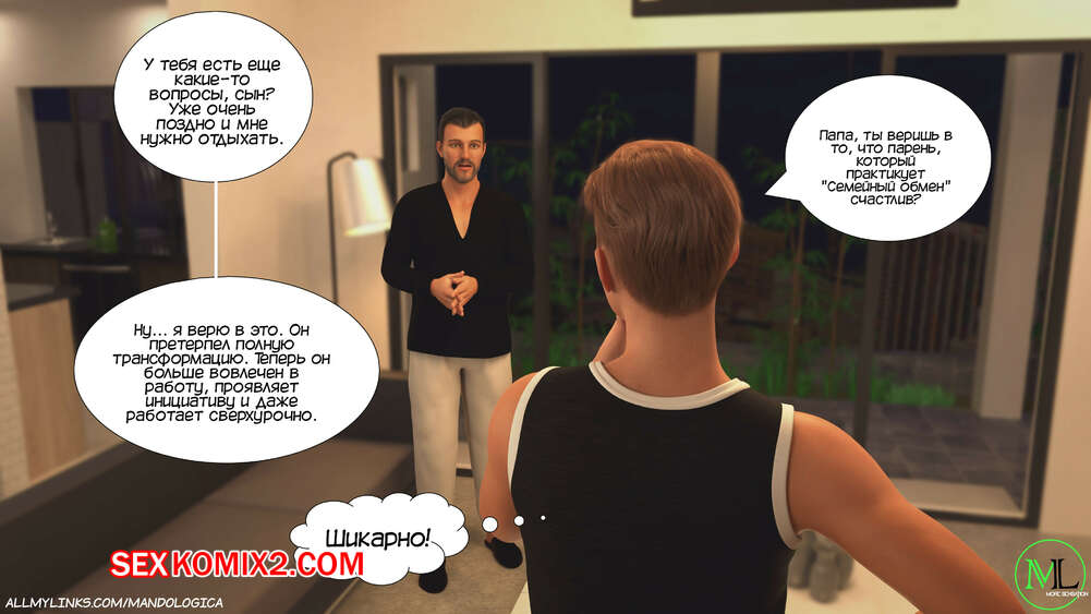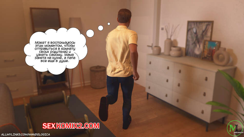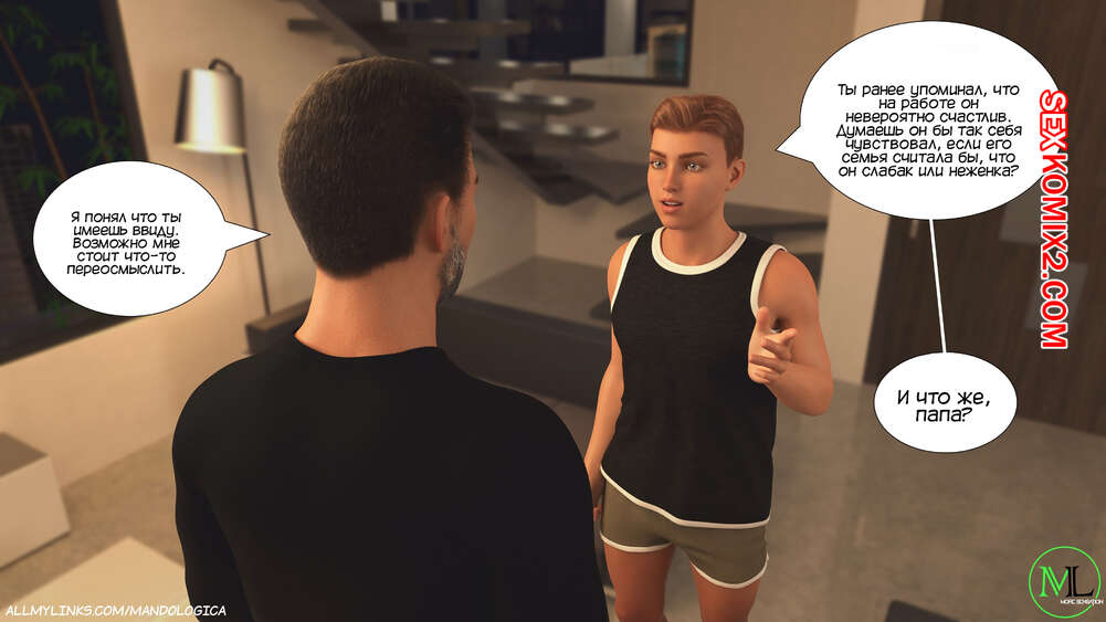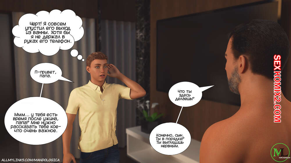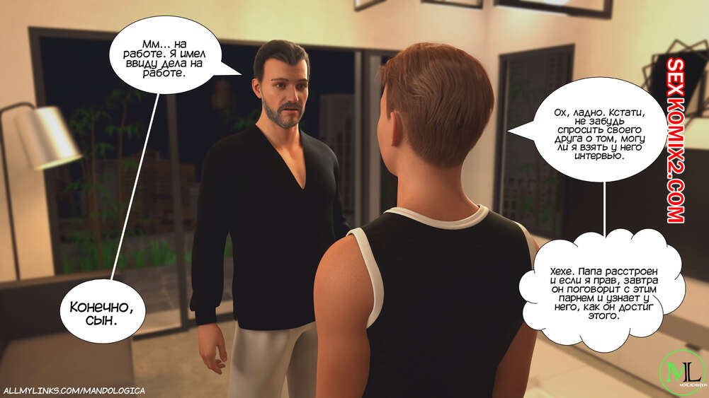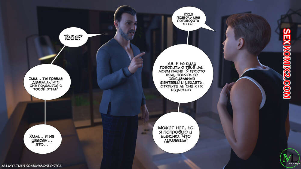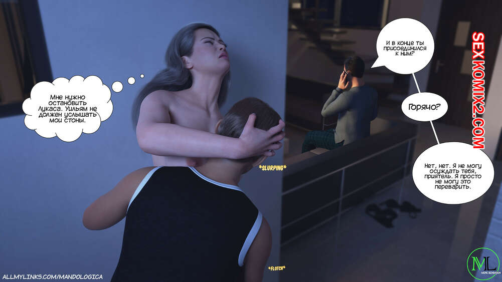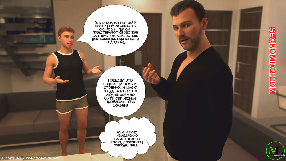 Порно комикс Разрушение границ. Часть 7. Breaking Boundaries. MandoLogica Адрианна купила сексуальный наряд, чтобы воплотить сексуальную фантазию Лукаса. Красотка дала ему почитать комикс, а сама стала вертеть перед ним своей задницей, соблазняя сына.