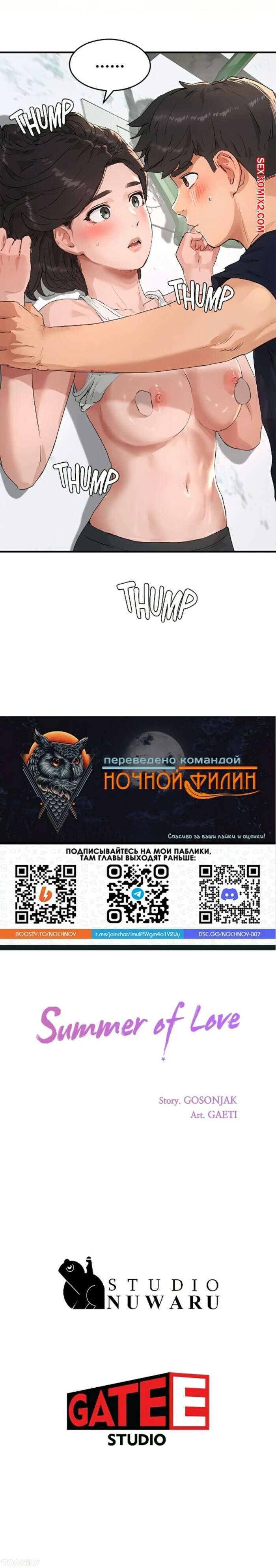 Порно комикс Летняя пора. Части 51 и 52 и 53. Summer time Сексуальная брюнетка решила помочь своему боссу расслабиться. Красотка встала на колени и стала сосать большой хуй парня, после чего он кончил ей в ротик, сняв напряжение.