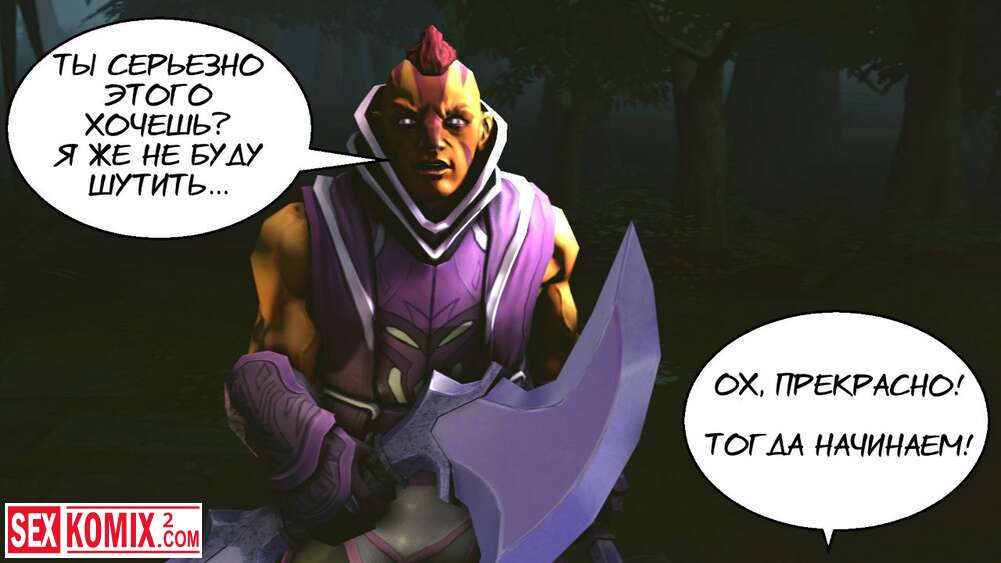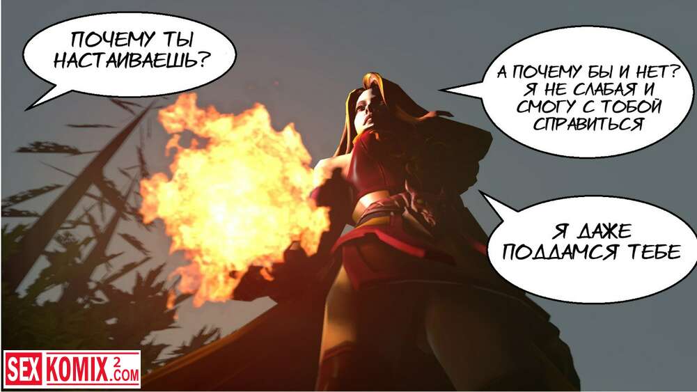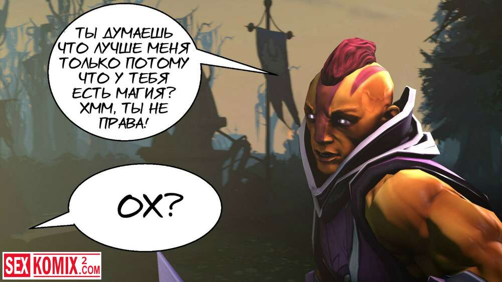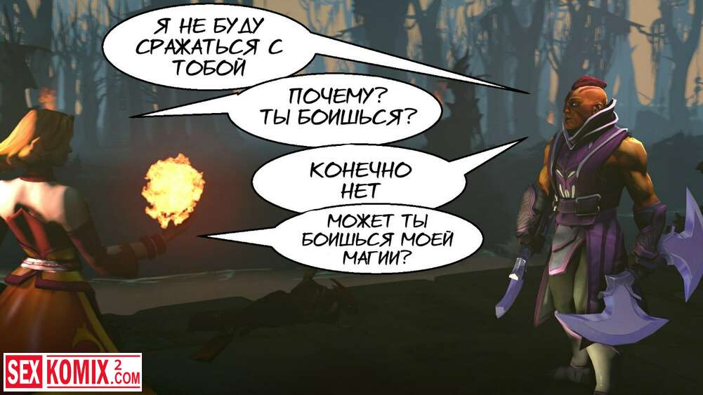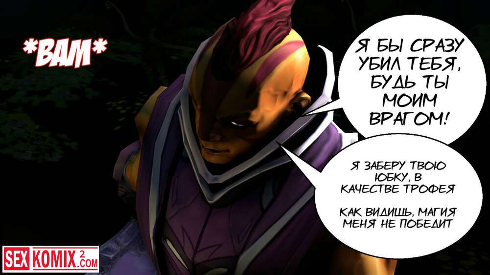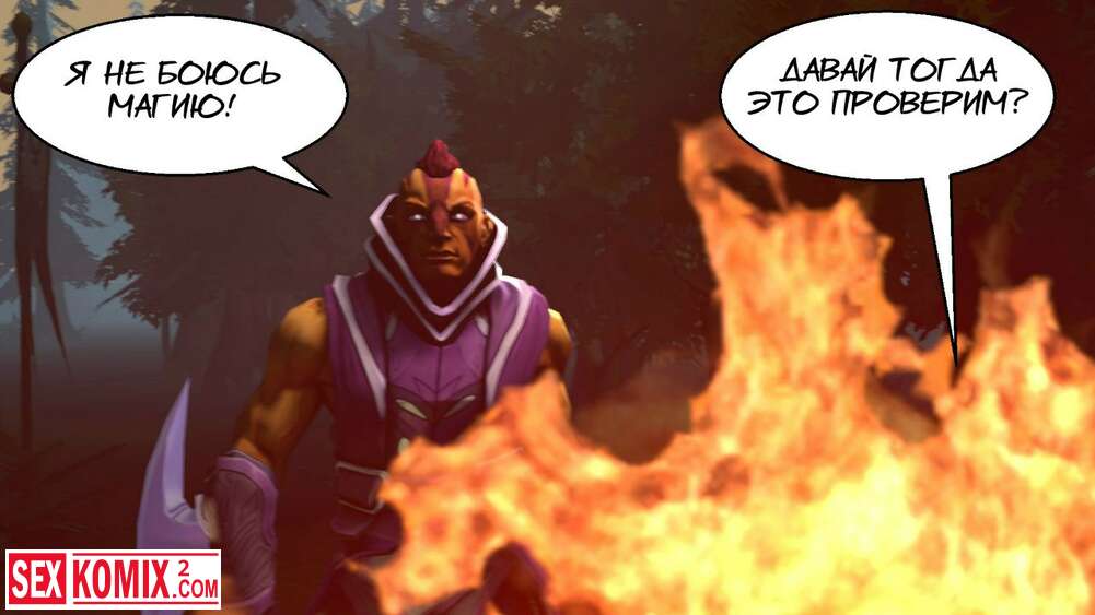 Порно комикс Дота. К черту магию. Воин попал в западню, и теперь он во власти сильно волшебницы. Она хочет от него только секс.