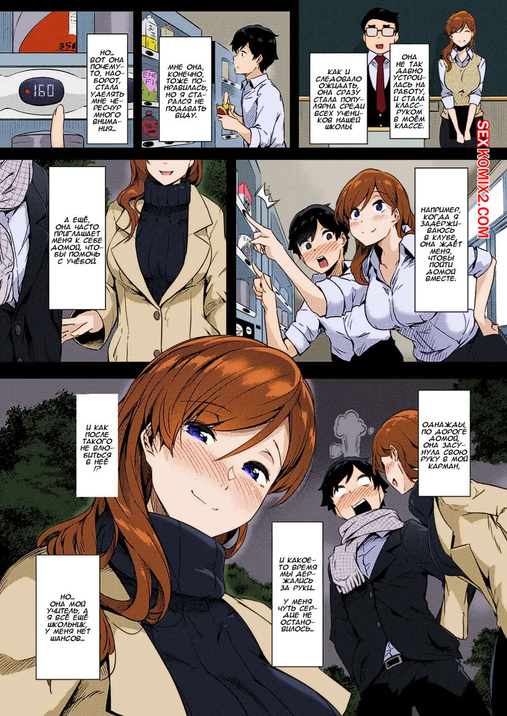 Порно комикс Учитель за кадром. Tokiwa Midori Сисястая милфа брюнетка была очень возбуждена и хотела трахаться. Она пригласила вечером своего ученика и соблазнила его шикарным телом. Красотка разделась и отсосала хуй парня, после чего дала ему себя выебать.