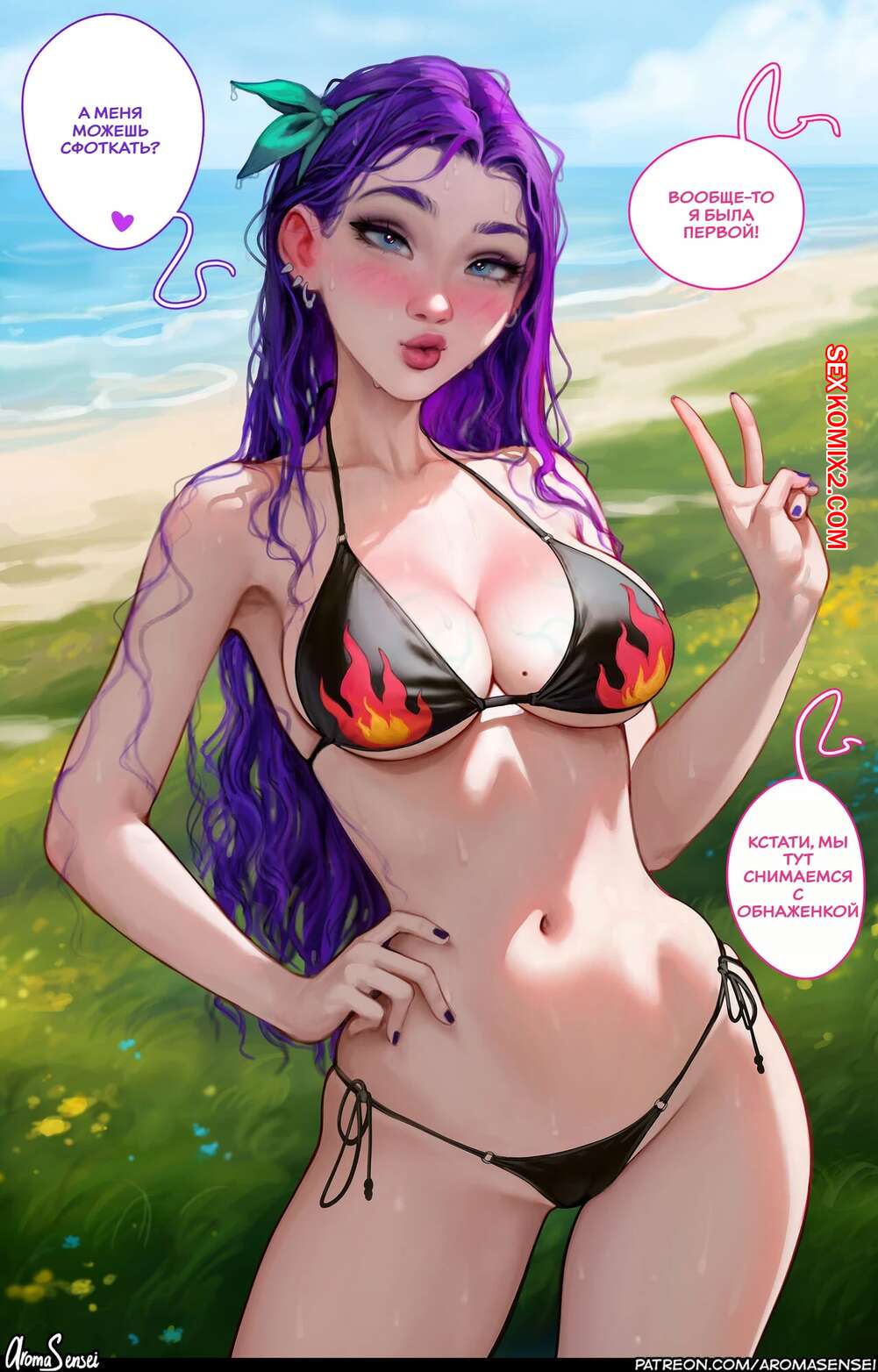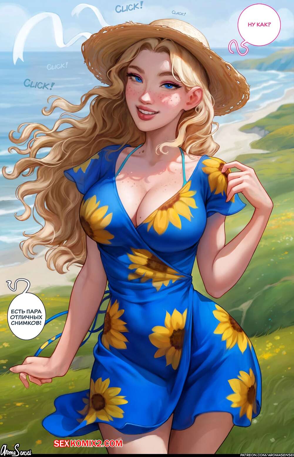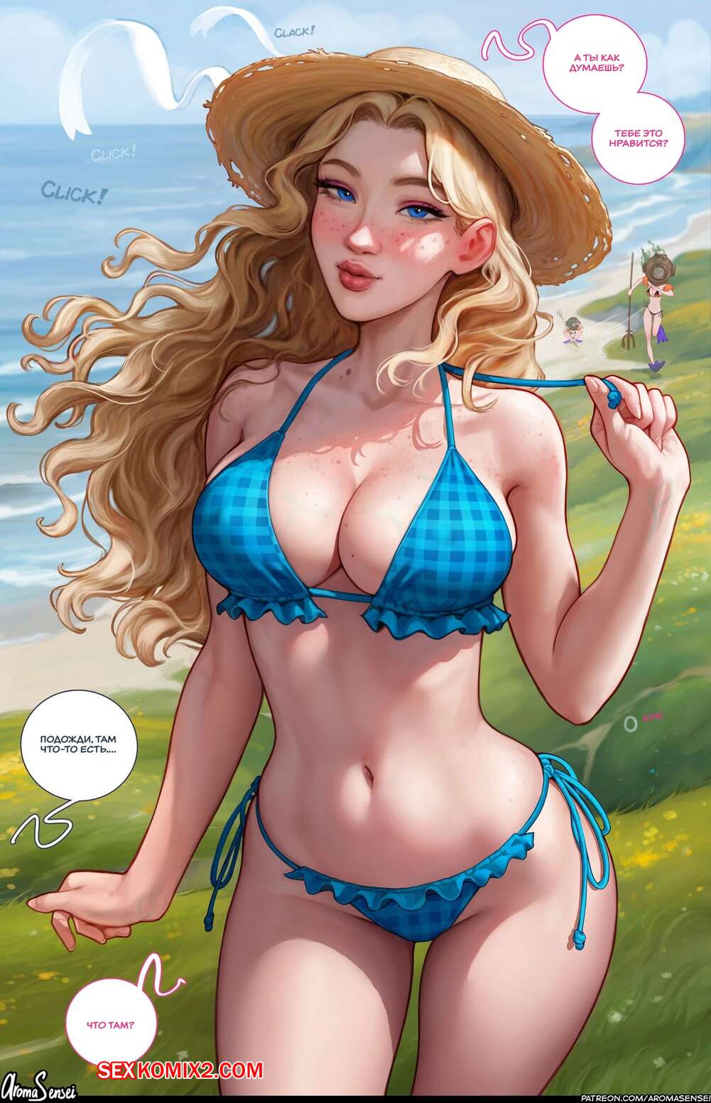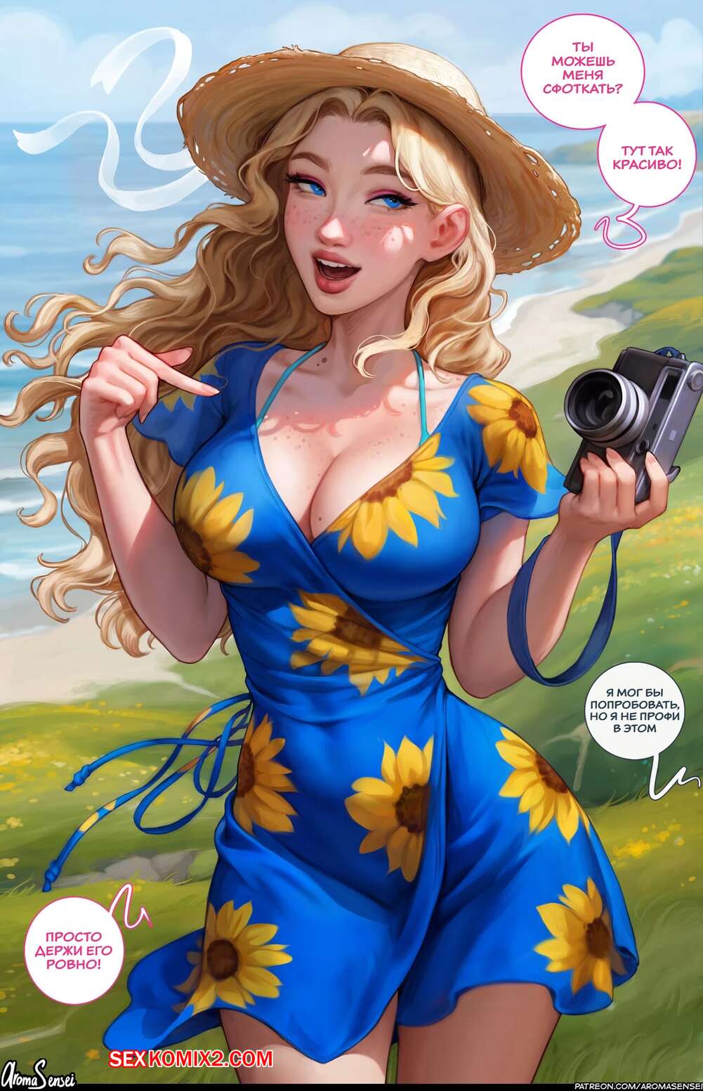 Порно комикс Stardew Valley. Фотосессия. Aroma Sensei Парень встретил свою сексуальную подругу на пляже и она попросила его пофоткать себя. Девушка разделась и показала парню свое шикарное тело во всей красе, после чего дала ему себя выебать.