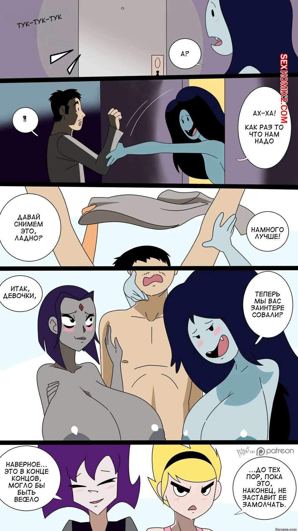 Порно комикс Вечеринка мультяшной оргии. Toon Orgy Party. PatDat. Горячие красотки были очень возбуждены и хотели трахаться. Они разделись и стали ласкать друг дружку, после чего позвали к себе парня, который выебал их пизденки.