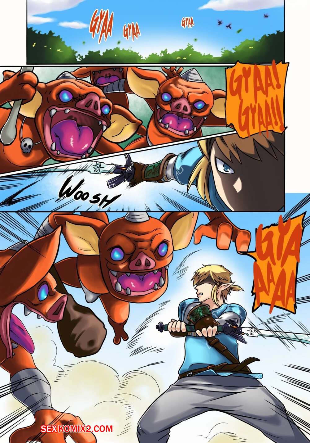 Порно комикс Legend Zelda. Дыхание дикой природы. Blow on the wild. PokiLewd