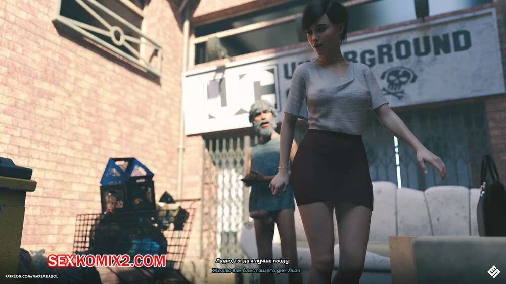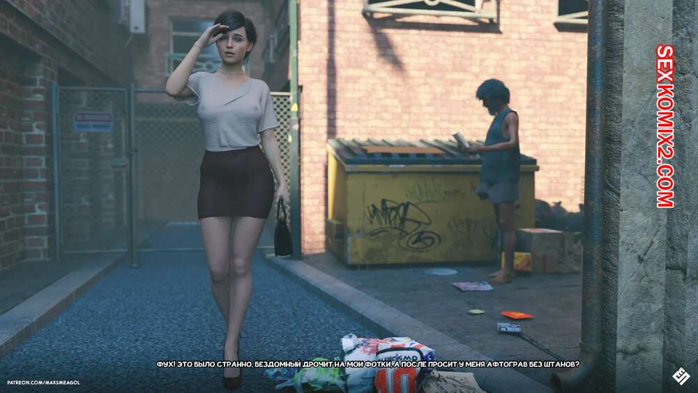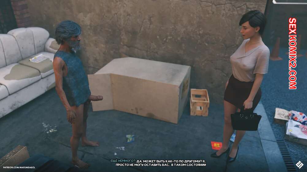 Порно комикс Переулок. Alley. MaxSmeagol Сексуальная брюнетка пошла в переулок, где встретила бездомного и разделась перед ним, позволив ему подрочить, глядя на нее. Красотка раздвинула ноги и дала старику трахнуть ее, получив огромное удовольствие.