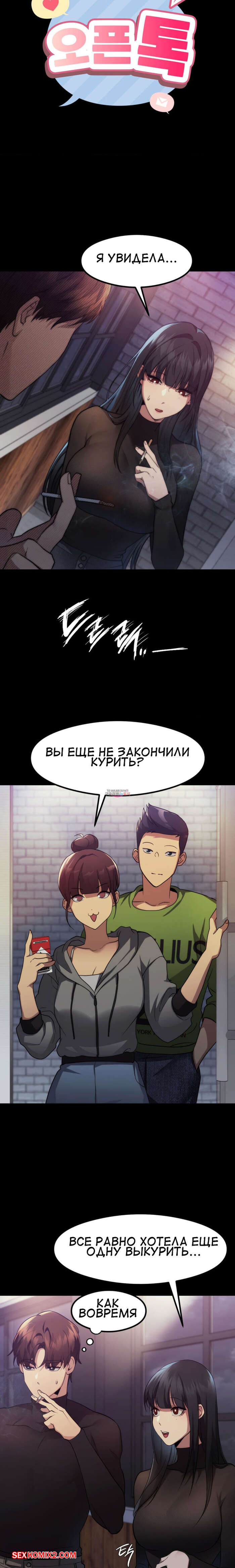 Порно комикс Открытый разговор. Часть 9. Open Talk Парень остался наедине с сексуальной брюнеткой и стал ласкать ее пизденку, возбуждая девушка. Красотка потекла и была готова отдаться парню, но им помешали их друзья.