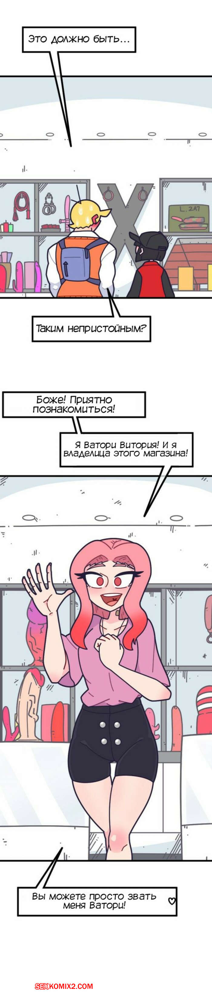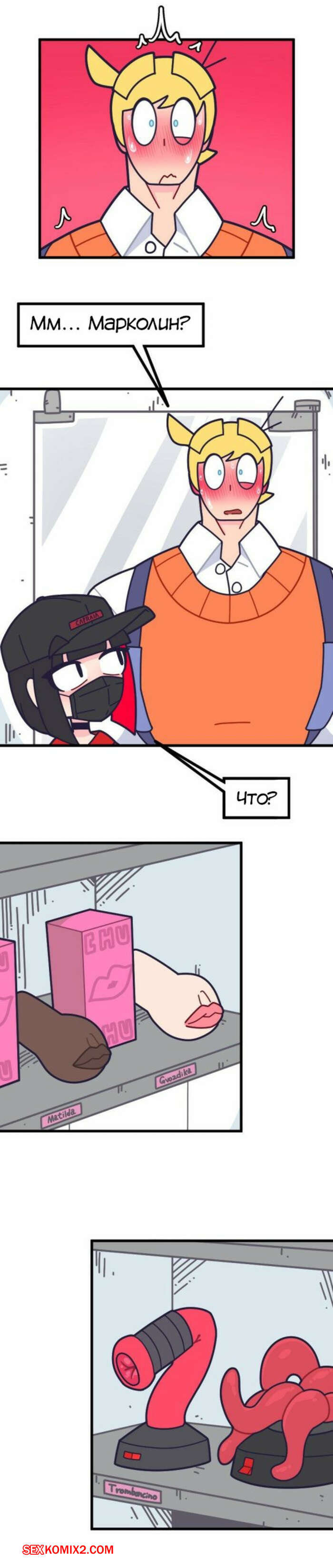 Порно комикс Привет Марколин Р. Часть 10. Hello Marcolin R. Kozatchu Ханс отправился с Марколин в секс шоп, где девушка стала обсуждать со своей подругой то, как парень трахается. Ему это не очень понравилось и он стал отвлекать девушек от разговора.
