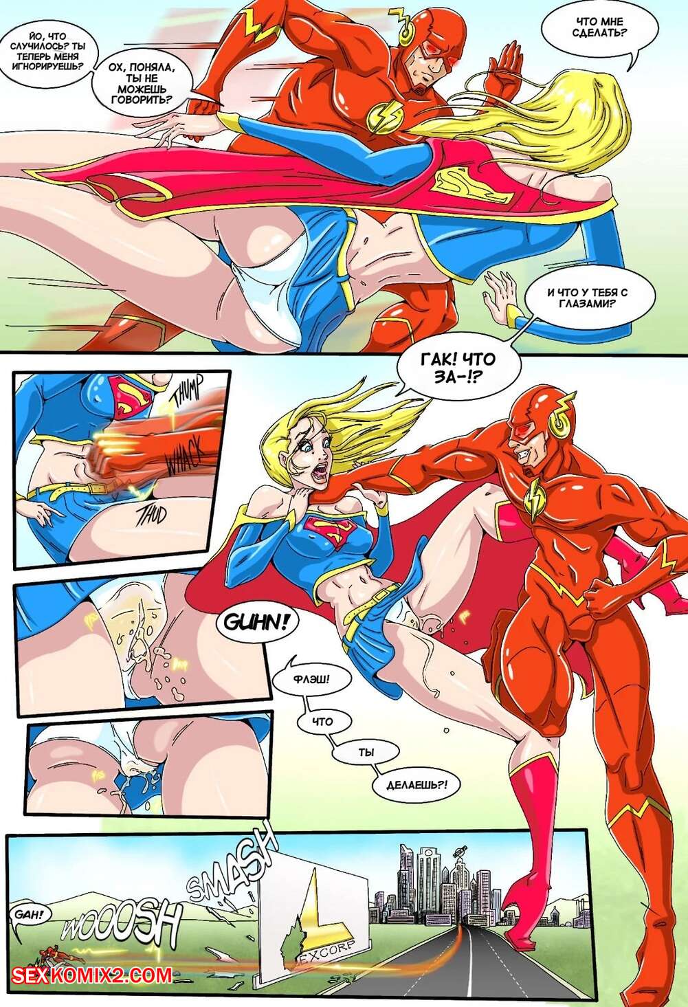 Порно комикс Супергерл. Настоящая несправедливость. Часть 2. True Injustice. Genex Сексуальная блондинка Супергерл столкнулась в Фдэшем и уступила ему в схватке. Спидстер раздел девушку и хорошенько выебал ее во все дырочки, используя свою суперскорость.