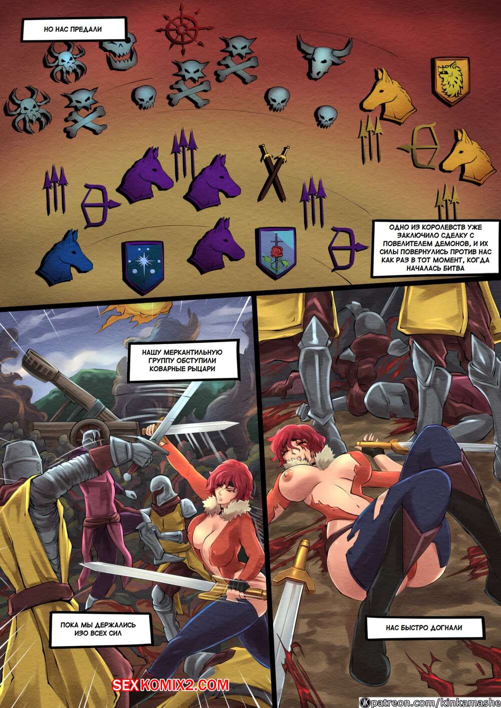 Порно комикс Наемный заводчик. Mercenary Breeder. Kinkamashe Горячие красотки после битвы попали в плен и теперь парни частенько с ними развлекаются. Они раздевают девушек и дают им отсосать свои большие хуи, после чего ебут их во все дырочки.