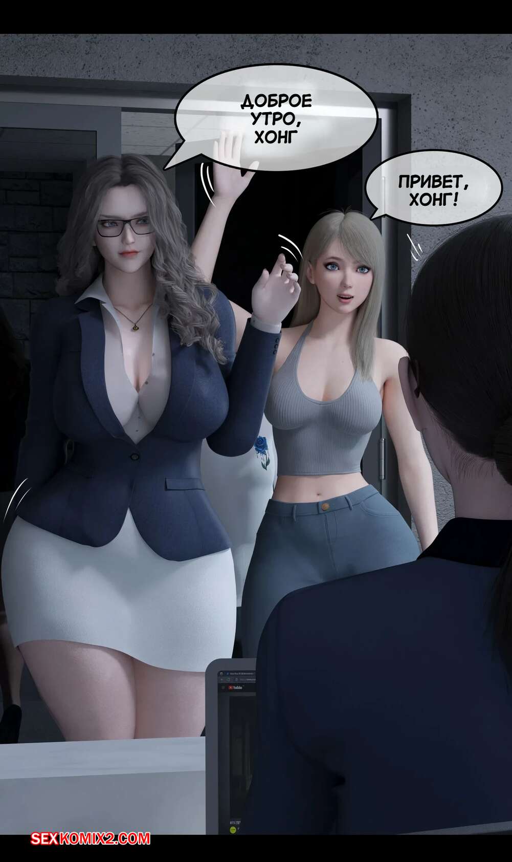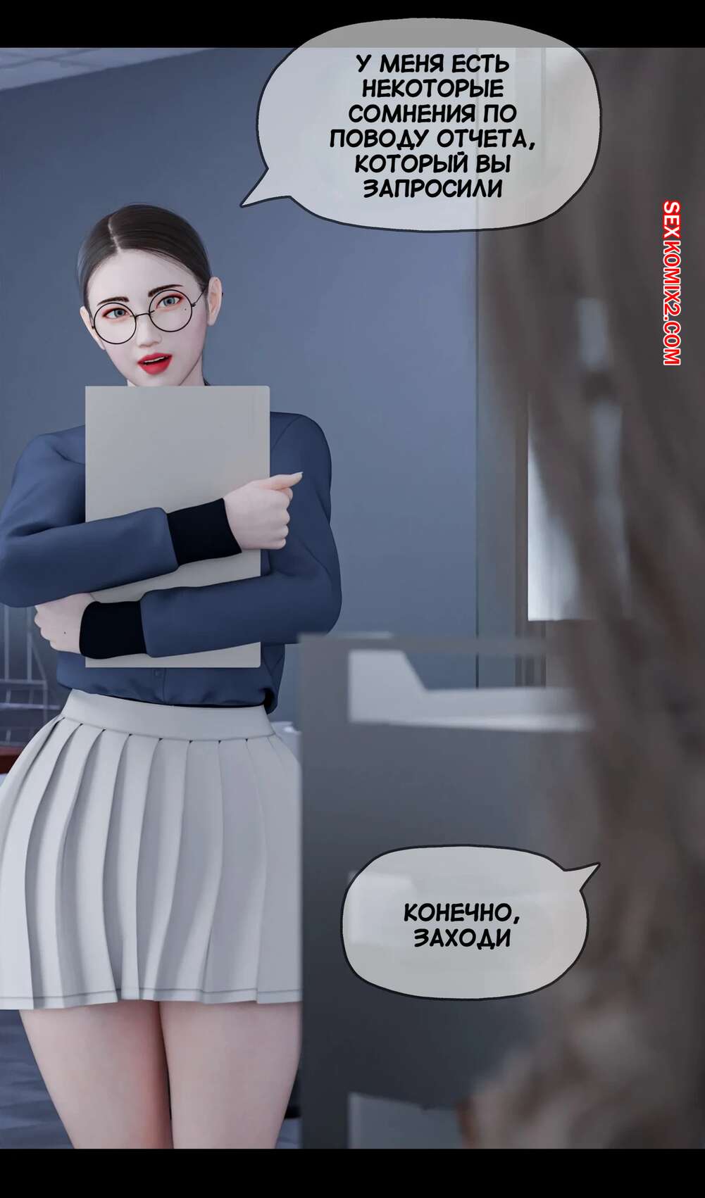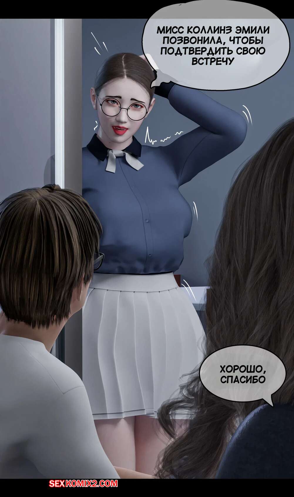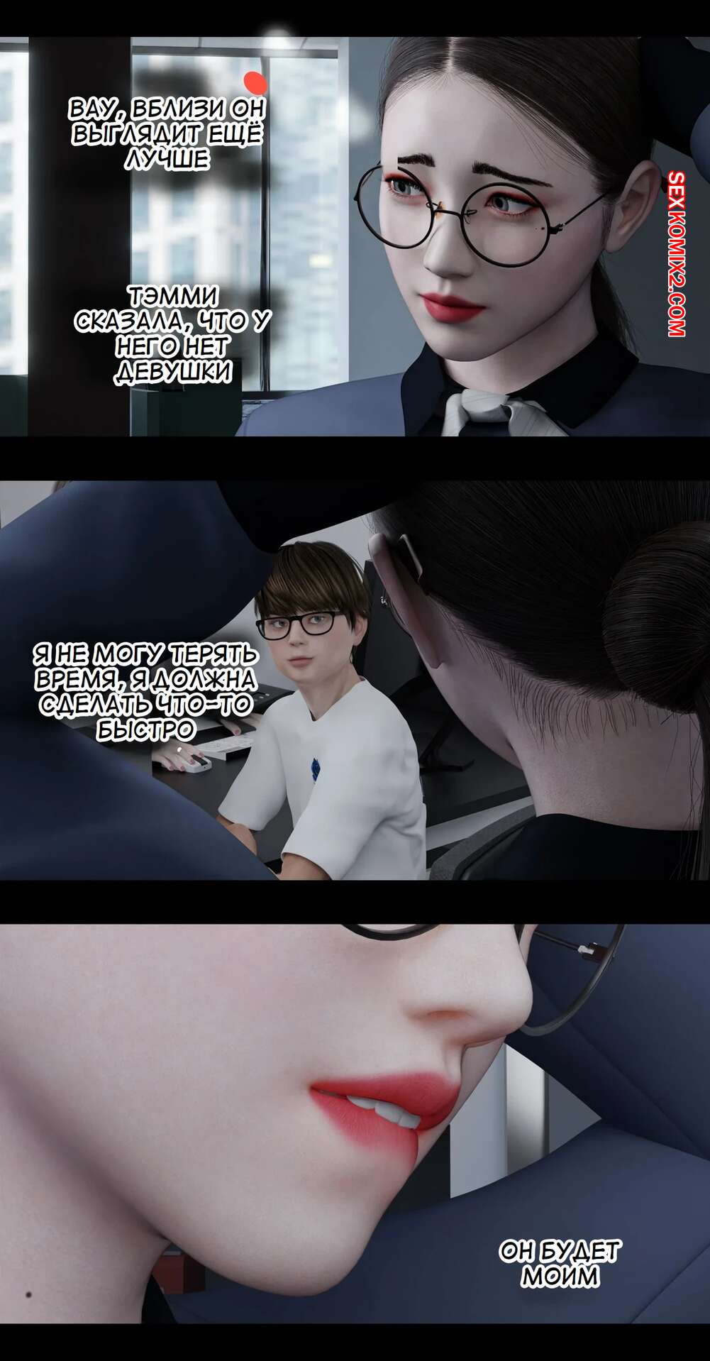 Порно комикс Моя соседская вдова. Часть 2. My Neighbors Widow. Rose Blue 3D Горячая брюнетка привела молодого парня к себе на работу в офис. Там на парня положила глаз сексуальная брюнетка, которая позвала парня в уединенное место и стала ласкать его своим язычком.