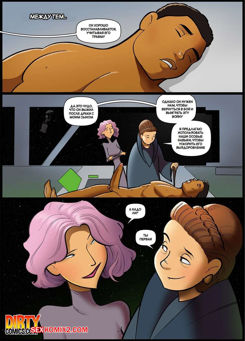 Порно комикс Звездные войны. Звездное порно. Последняя девственница. The Last Virgin. Dirtycomics Горячая красотка Рей прибыла к Люку Скайуокеру, чтобы научиться у него владеть силой. Но вместо этого она открыла для себя совсем неожиданные увлечения мастера джедая.