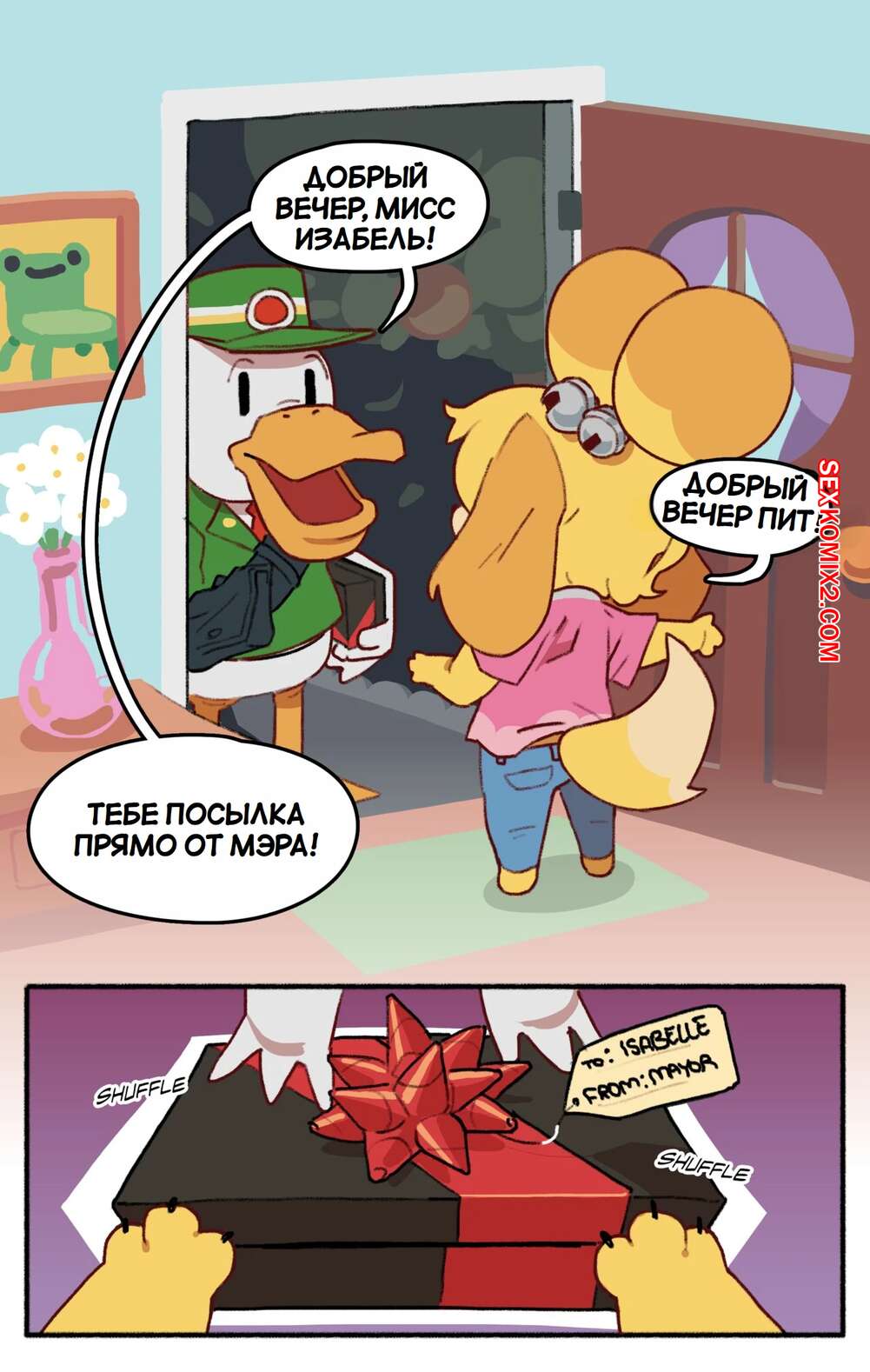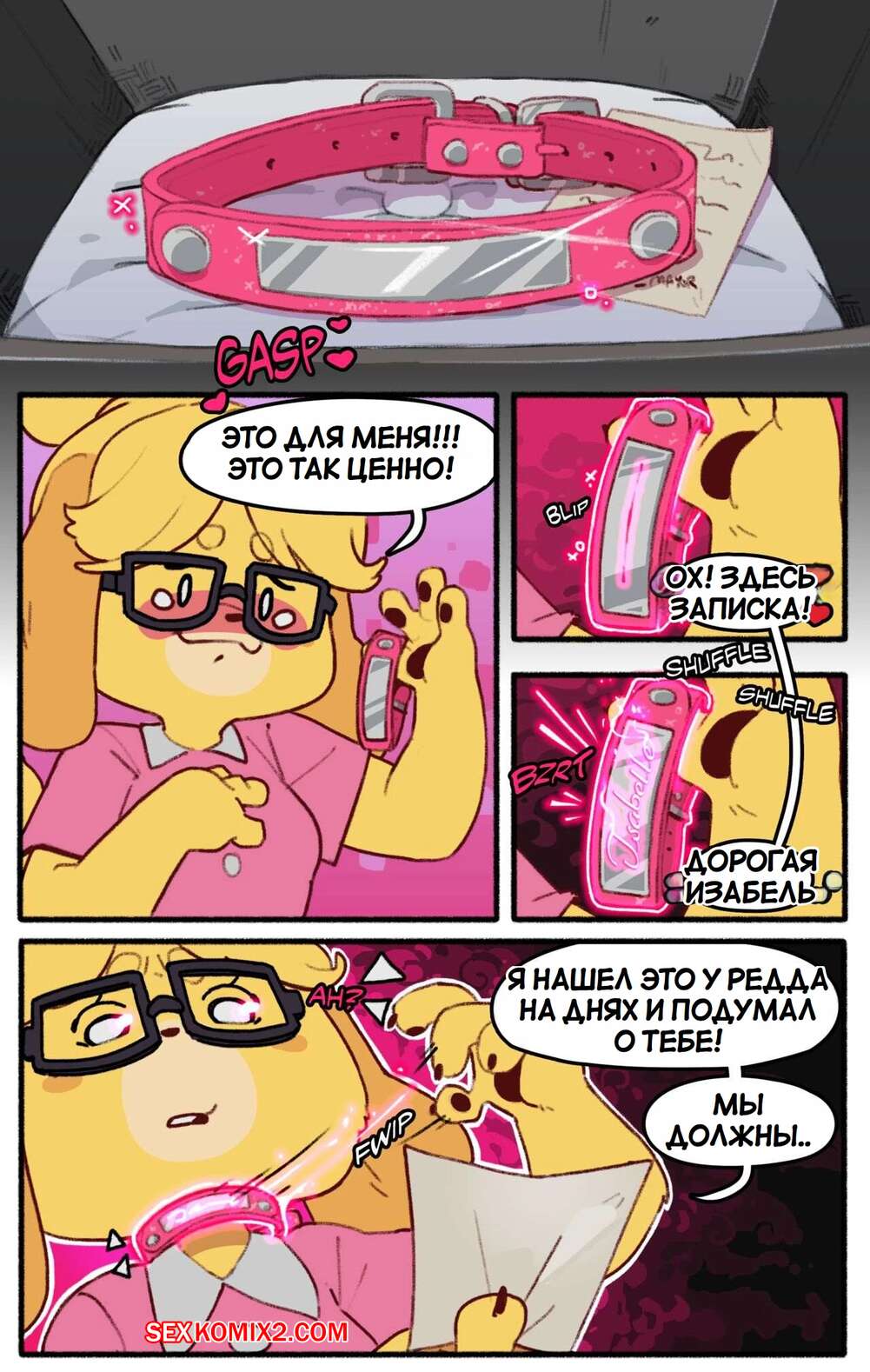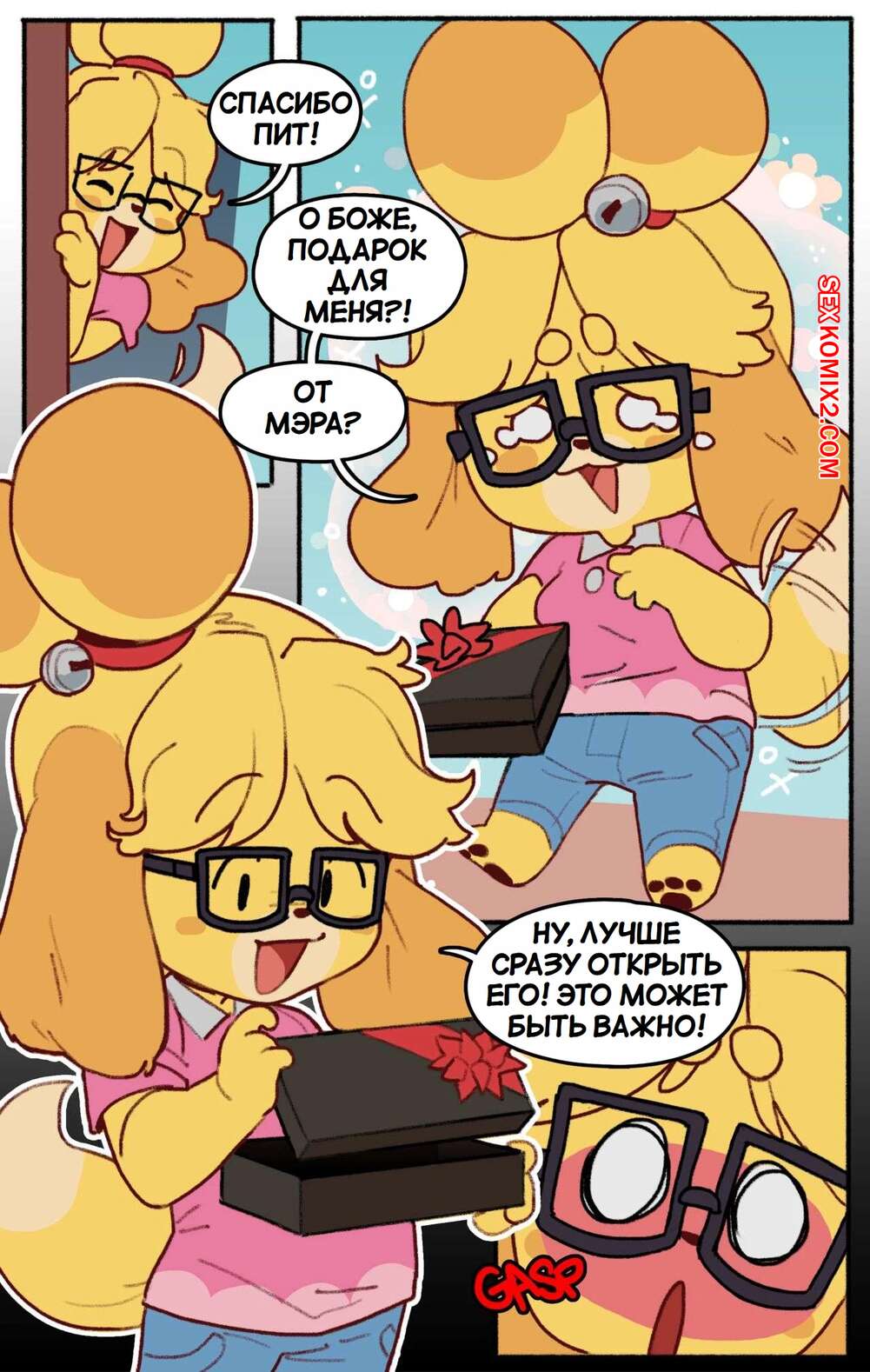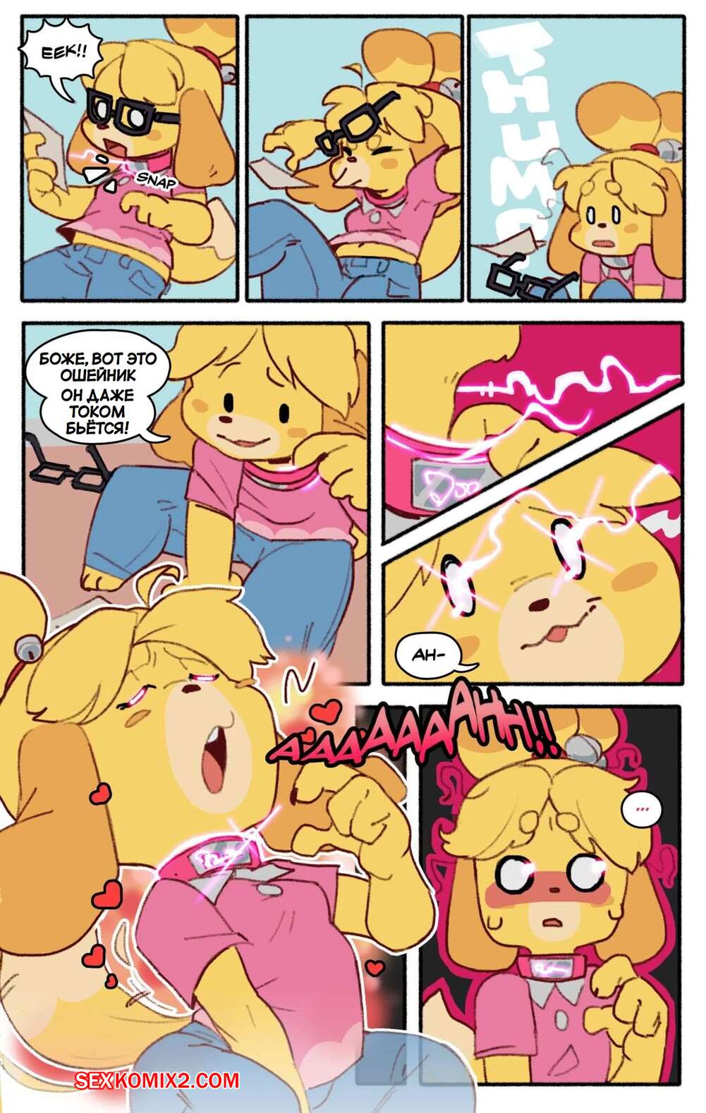 Порно комикс Animal Crossing. Подарок Изабель. Isabelles Gift. Knuxxxy Горячая блондинка Изабель получила в подарок ошейник. Надев его, девушка очень возбудилась. Она стала дрочить свою пизденку, после чего отправилась на улицу в поисках члена.