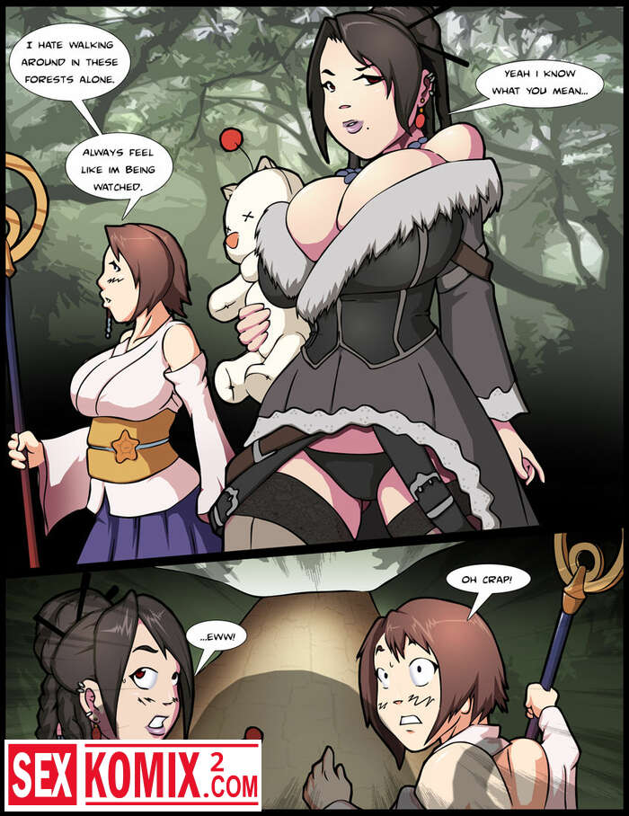 Порно комикс Последняя фантазия. Onagi. В мистическом лесу на девушек напали монстры, горгулья и тентакли и трахеули их.