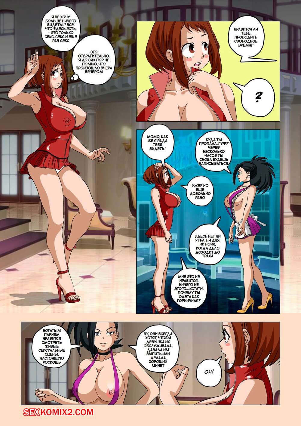 Порно комикс Академия. Назад в ад. Back to Hell. Super Melons. Горячая красотка Урарака проснулась утром во дворце после долгой ночи секса. Красотка поспешила одеться и отправилась на выход, где встретила подруг, которые продолжали ебаться.