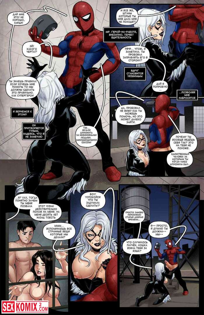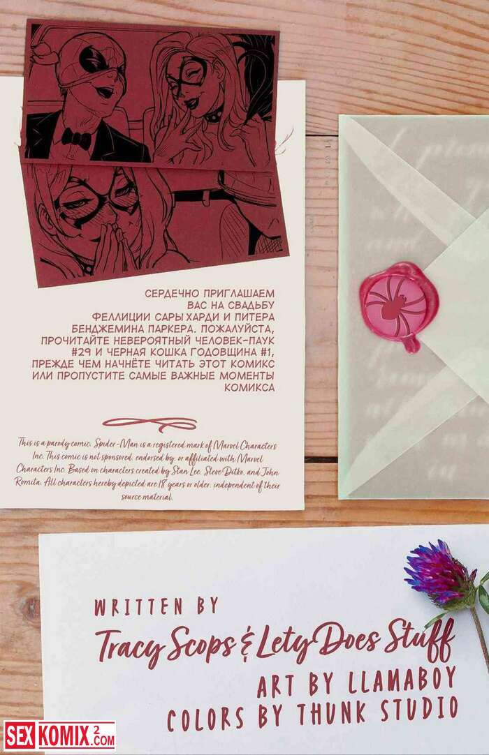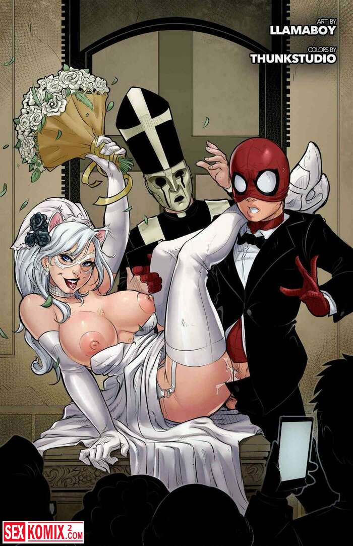 Порно комикс Свадьба Человека-паука и Черной кошки. У супер героем все не обычно, даже постановка свадьбы прошла не как у простых людей.