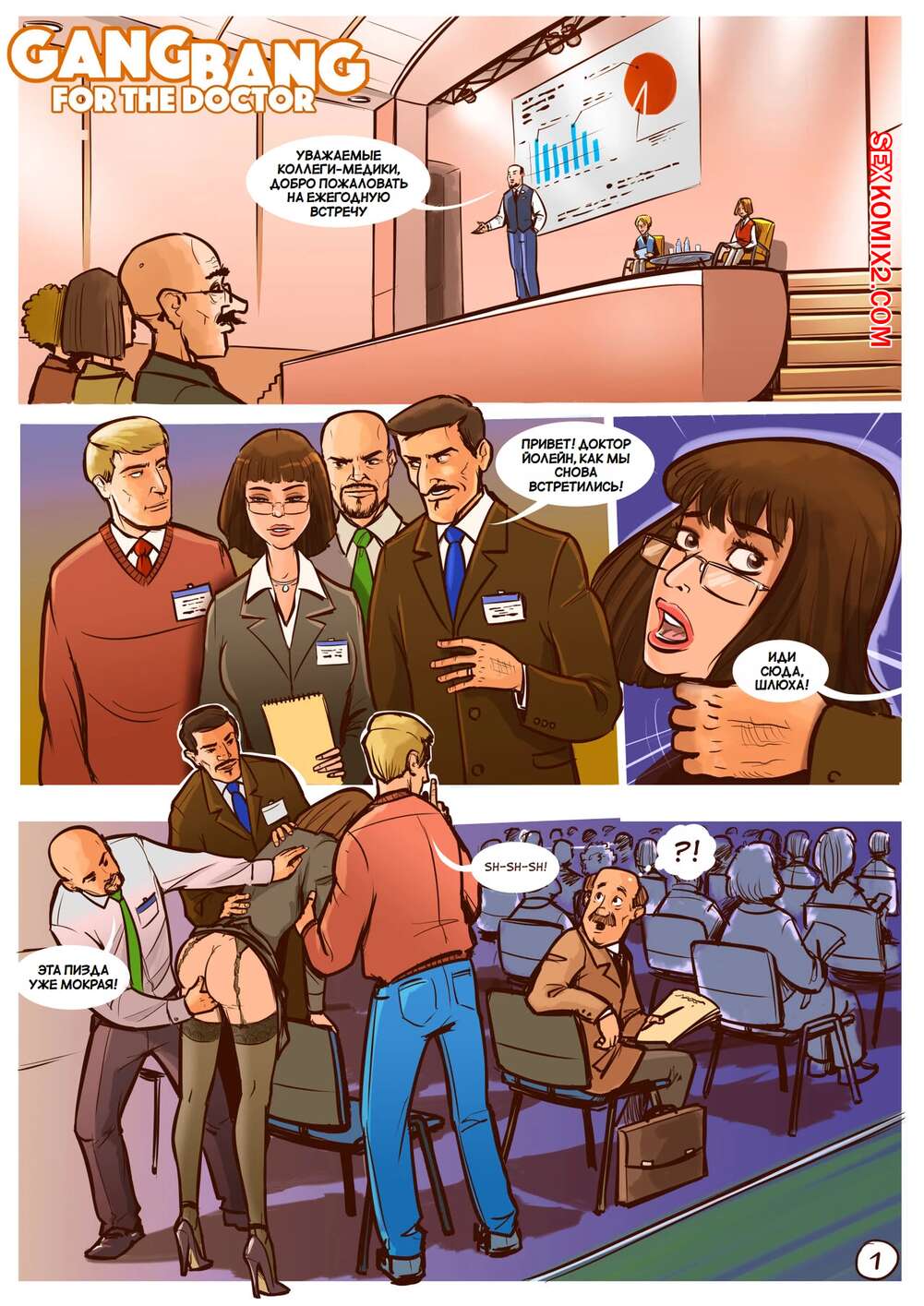 Порно комикс Групповуха для доктора. Gangbang for the pretty doctor. Disarten. Горячим женщинам докторам не так легко. Их пациенты хотят их выебать, а иногда сразу все.