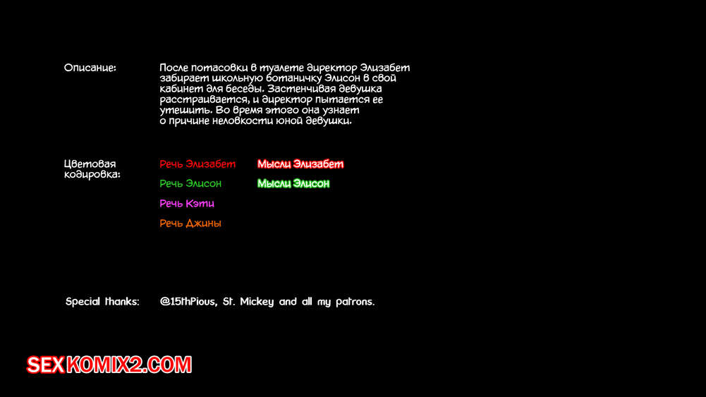 Все персонажи данного порно комикса являются вымышленными и имеют возраст старше 18 лет, они исполняют роли согласно сюжету комикса