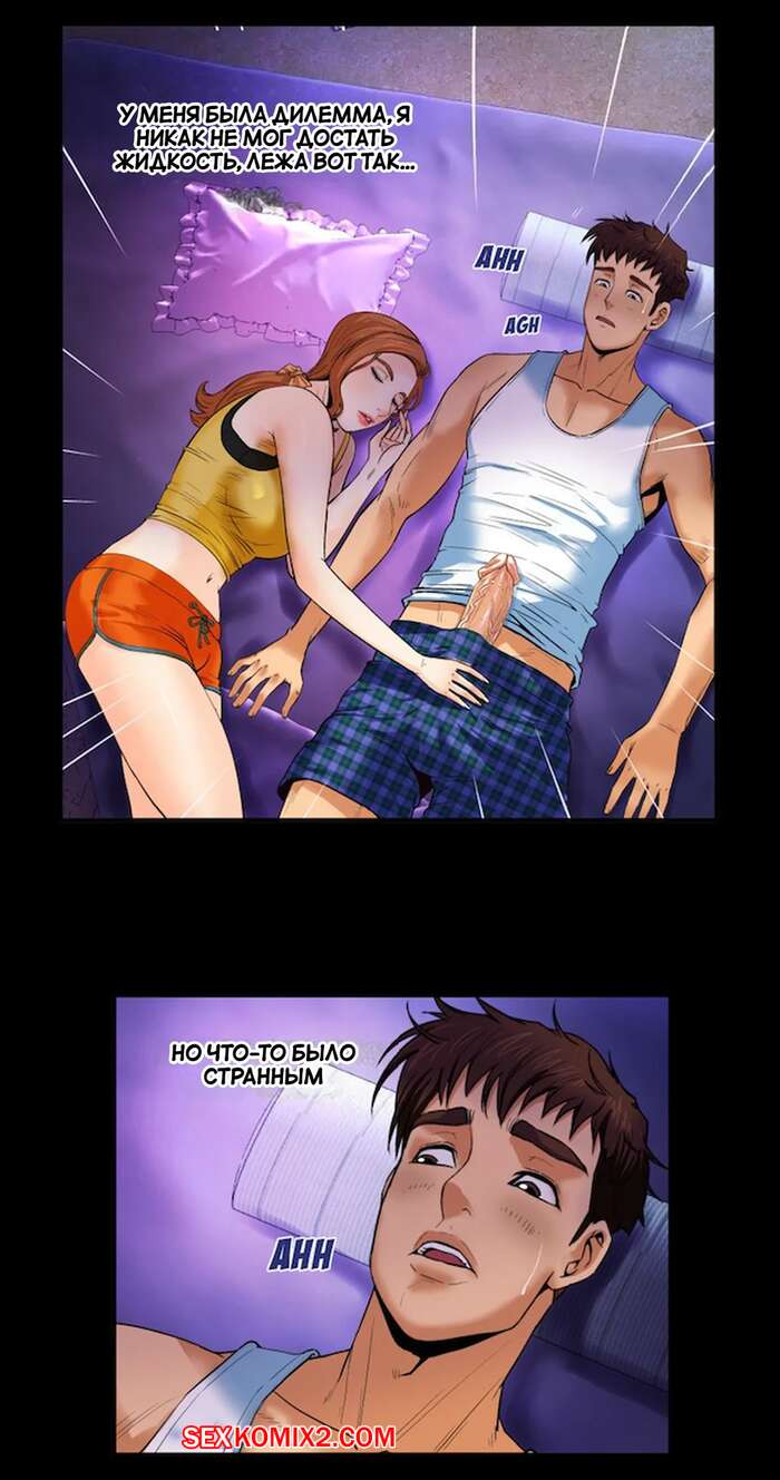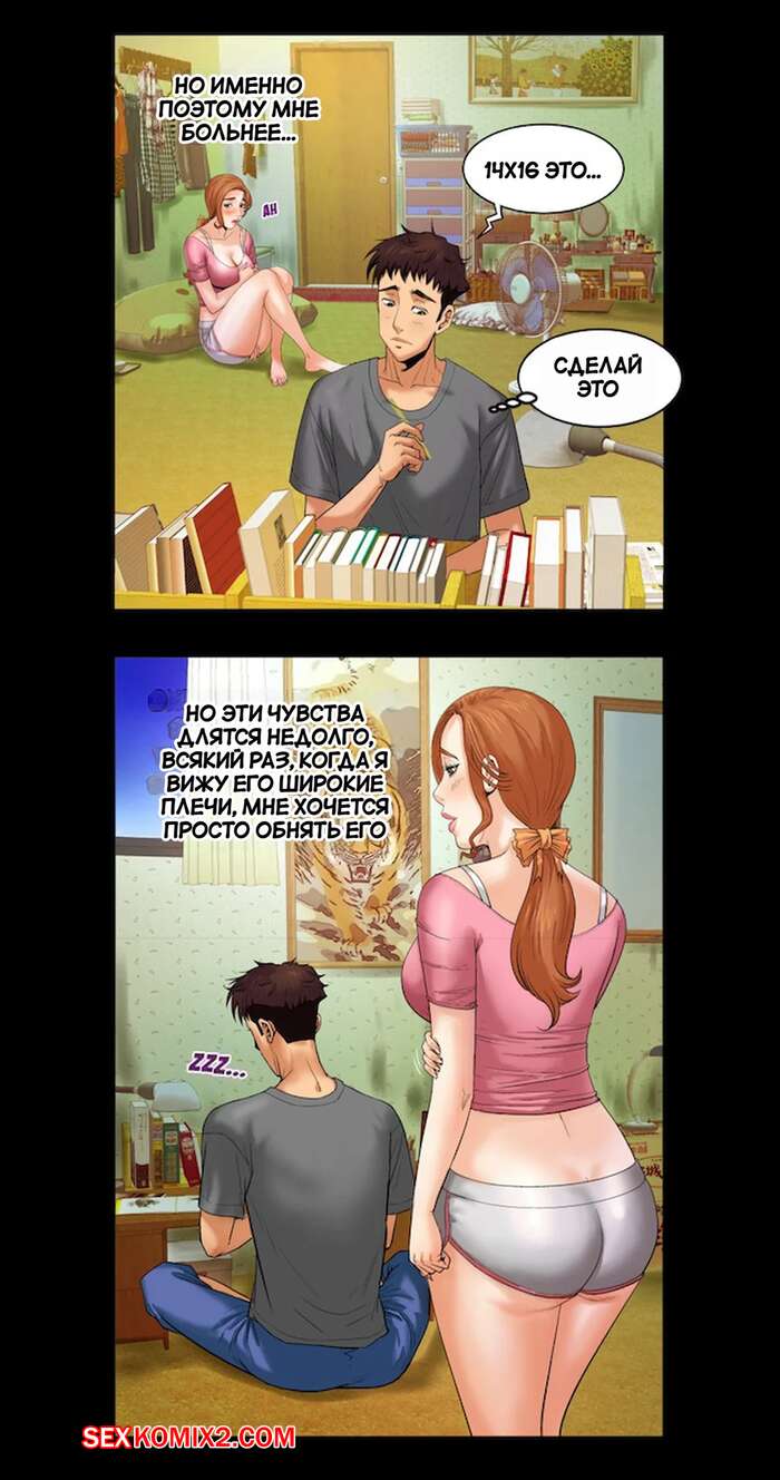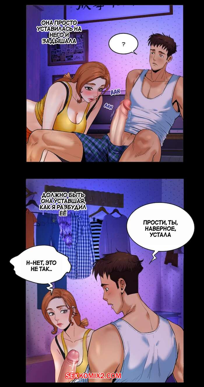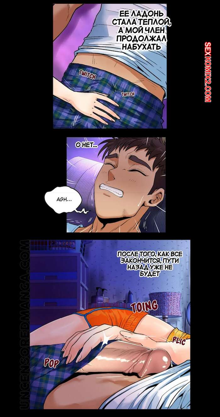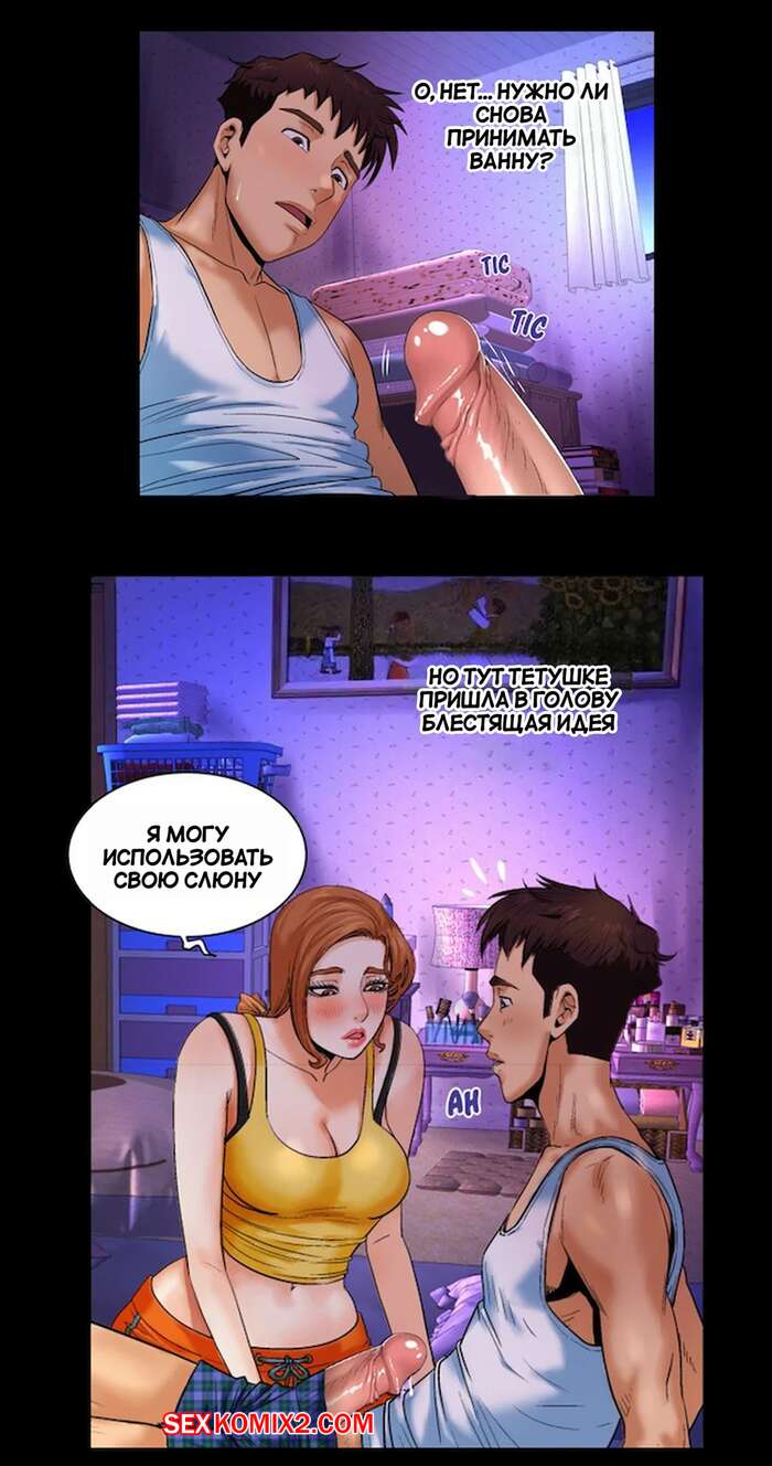Порно комикс Моя тетя. Без цензуры. Часть 2. My Aunt. Toomics Сисястая милфа легла спать вместе со своим племянником и у парня встал хуй. Красотку это возбудило, поэтому она сняла с парня трусы и стала ему отсасывать.